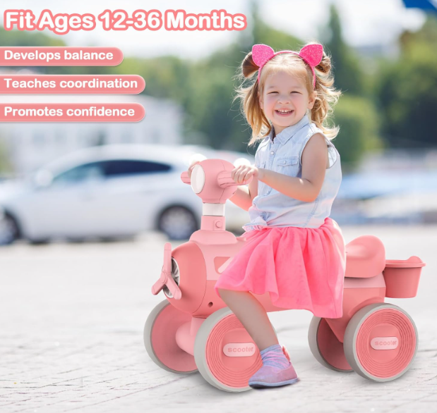 ZelleSturdy & Safe: Our mini balance bike have no sharp design, no risk of scratches for your baby during use. No pedal and fully widened closed wheel to avoid clamping baby's feet. 135°turning limit and gravity steering without leaving the ground to prevent the baby from turning over.