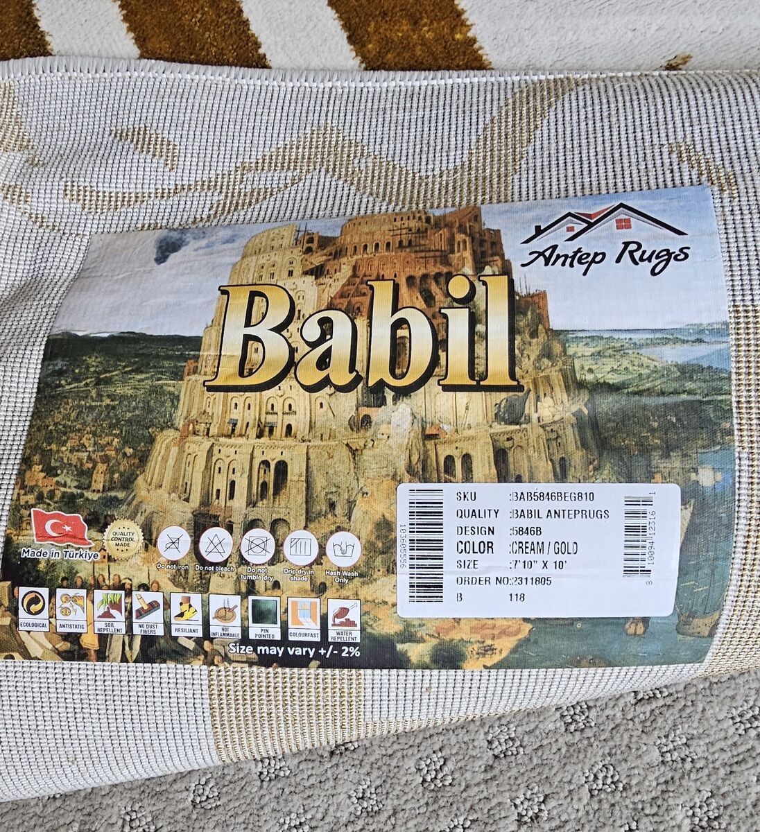 VenmoBabil Anteprugs Cream/Gold Area Rug. '7'10"x10'. Nonslip.