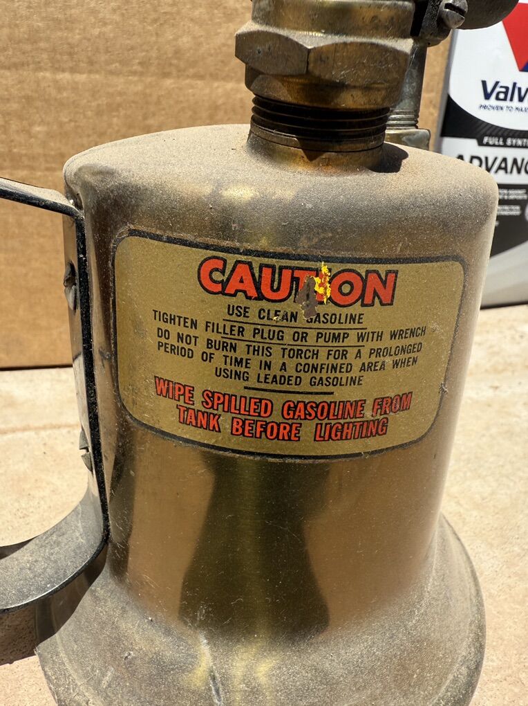 ApplePayBrass gasoline blow torch. Fully functional. No damage. Not a reproduction. Has been indoors for over 60 years. Ships via US Mail.