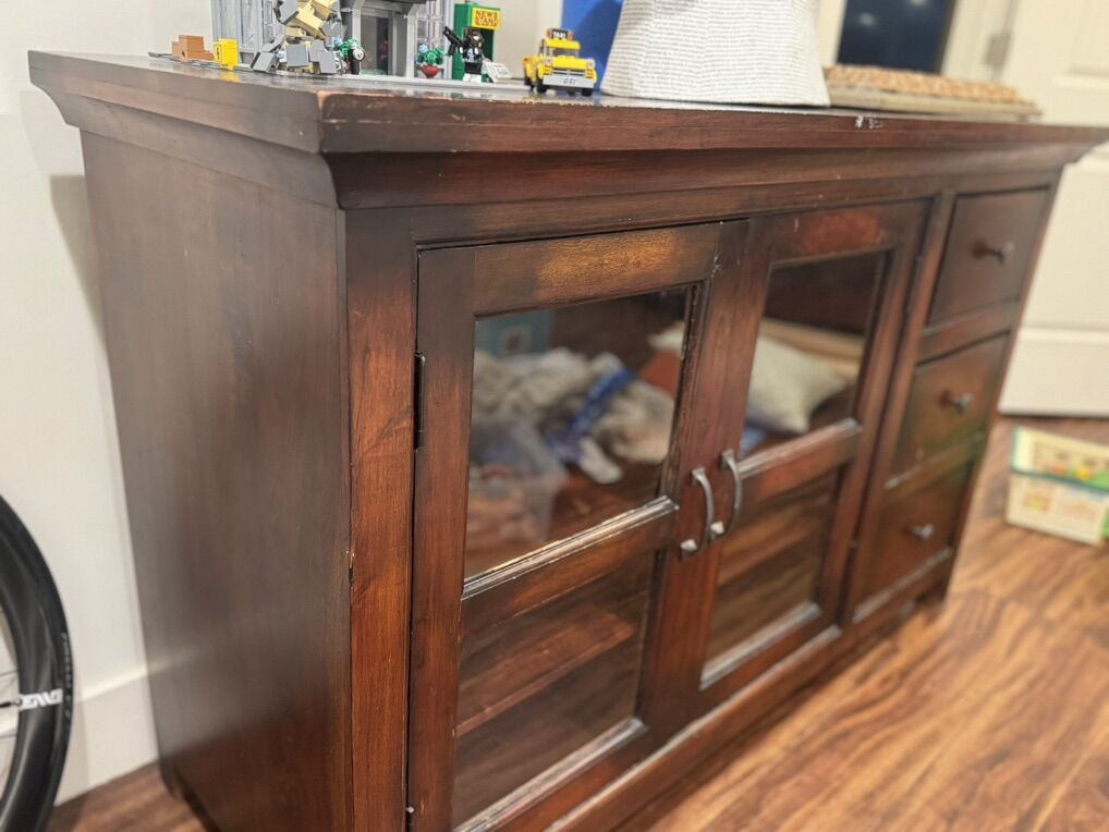 Originally purchased from Crate & Barrel. Solid wood, well-made.