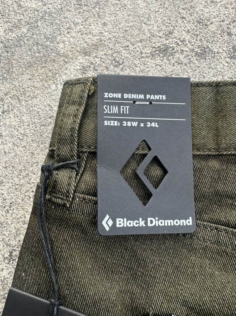 Black diamond 38Wx34L slim fit zone denim pants. These are an olive green color and are new with tags and in a regular fit. See photos for details. I take cash or Venmo, but cash is preferred. Text is best. 801-201-4446. Check out my other ads for additional sizes and styles.