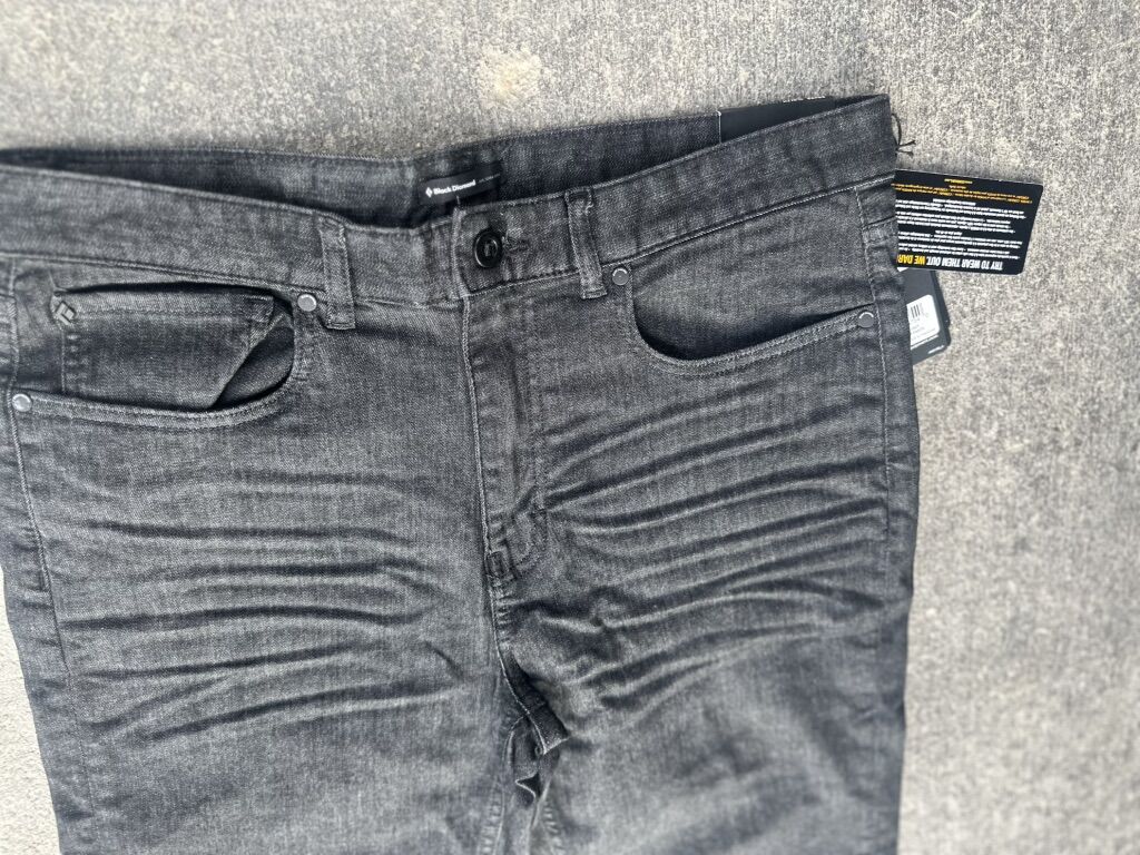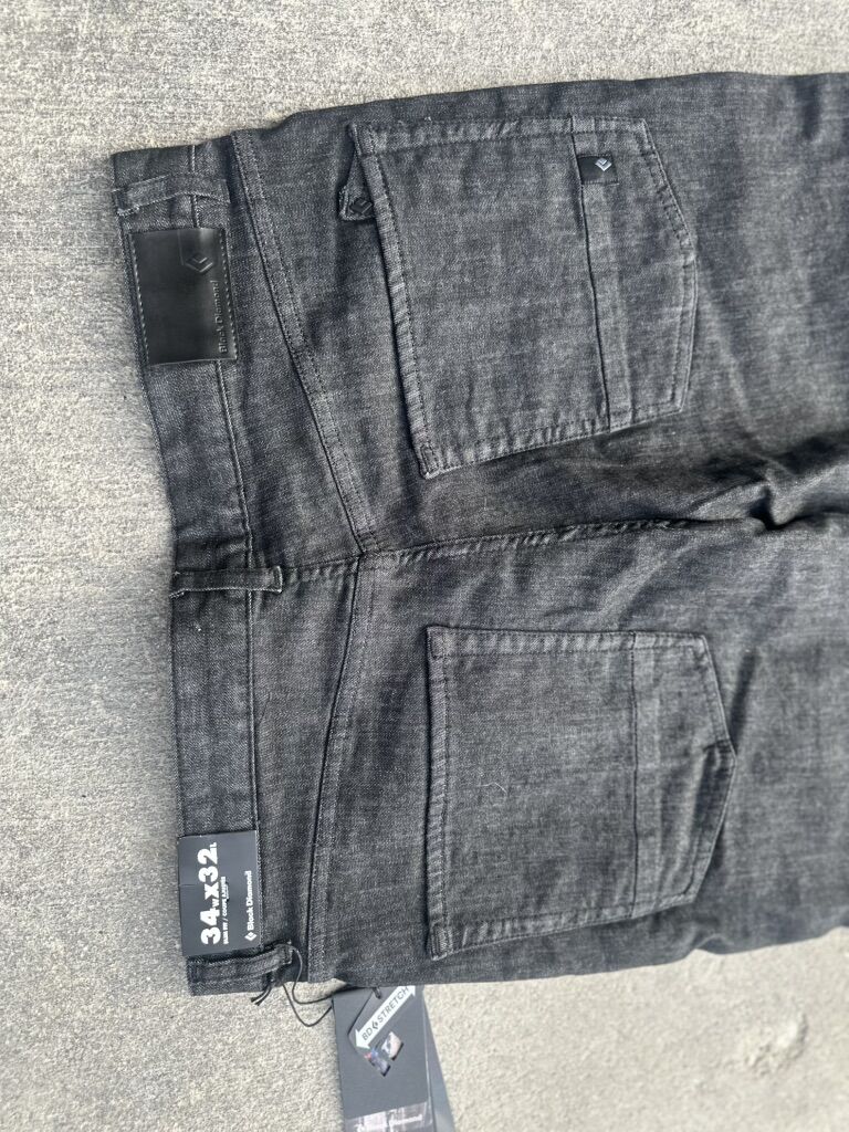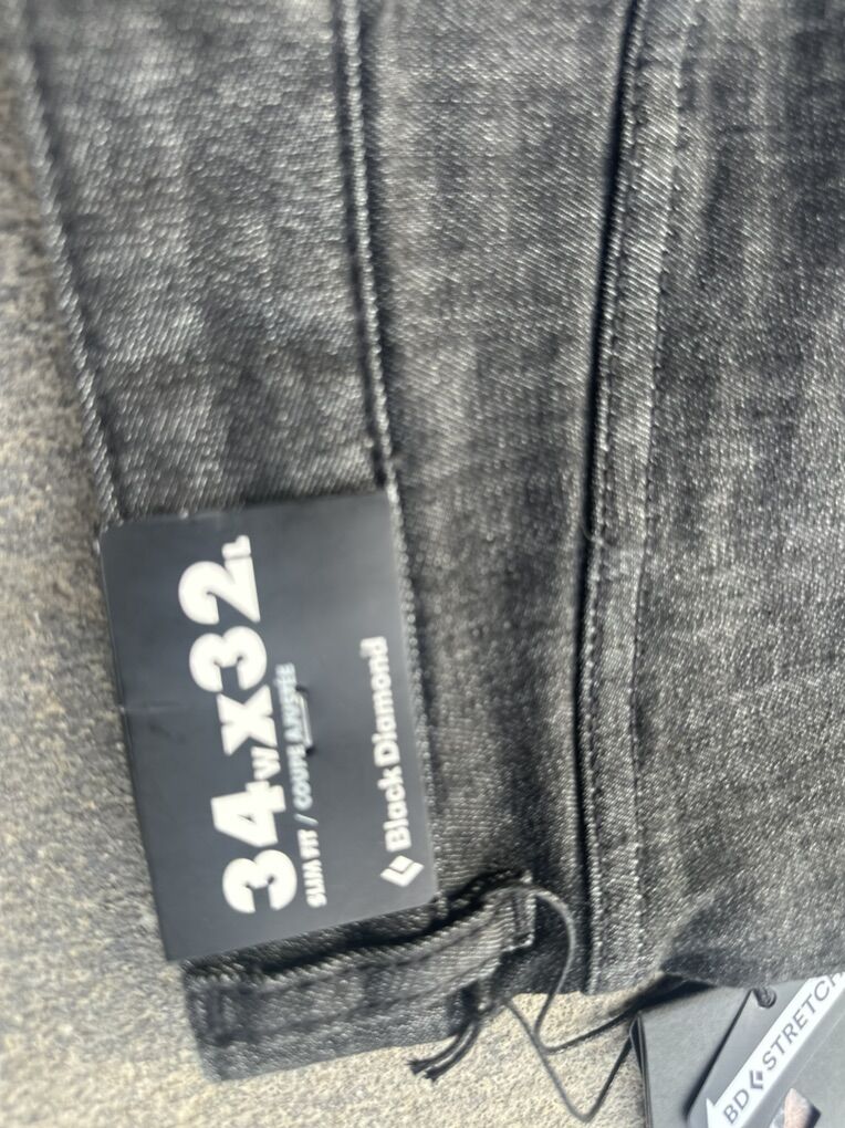 Black diamond 34Wx32L black denim slim fit pants. they are made of forged denim and are stretchy. They are new with tags. See photos for details. I take cash or Venmo, but cash is preferred. Text is best. 801-201-4446. Check out my other ads for additional sizes and styles.