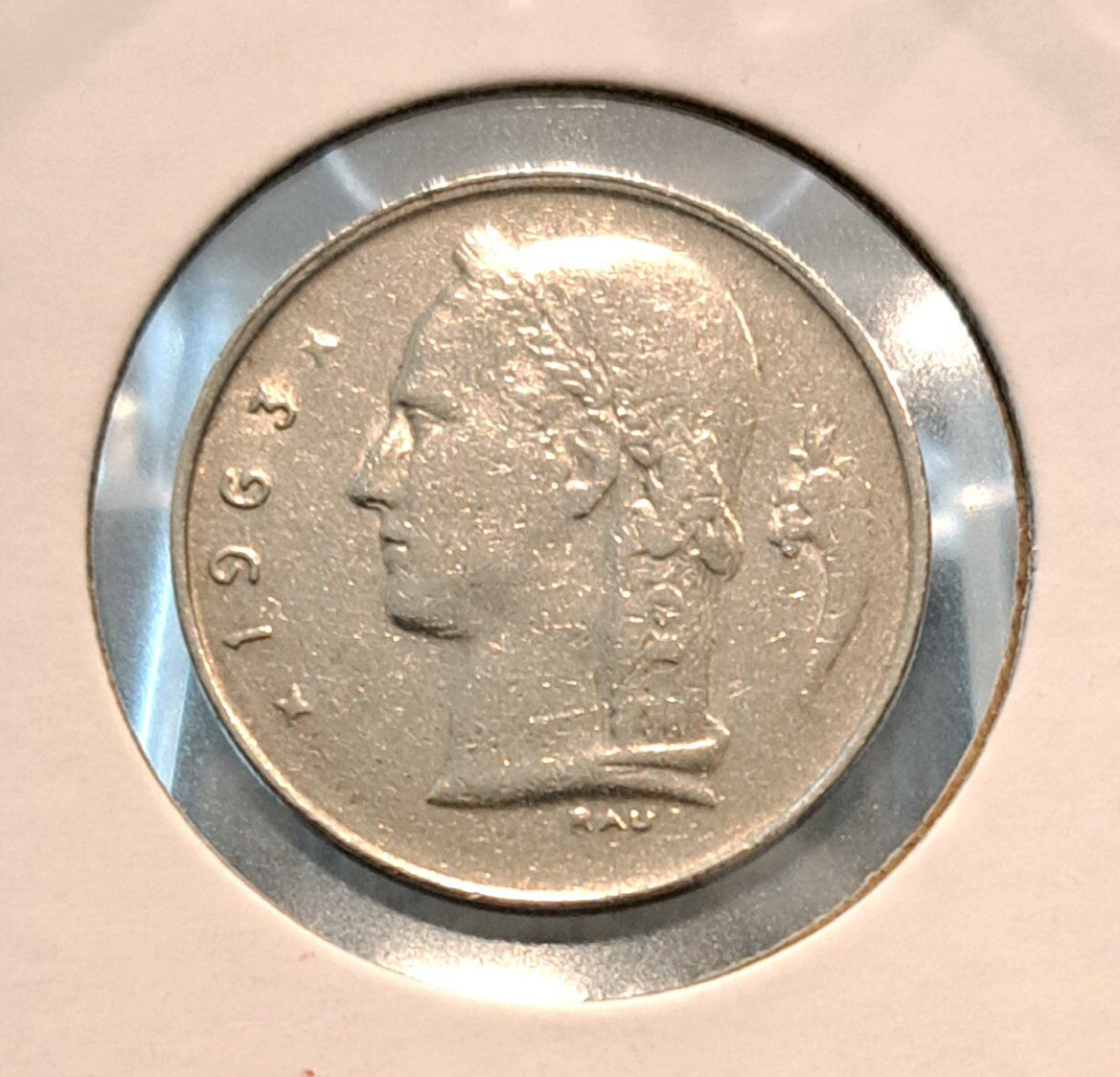 Rare 1963 Belgium Franc KM# 142.2 - variety has a medal alignment instead of coin alignment. $20 Cash