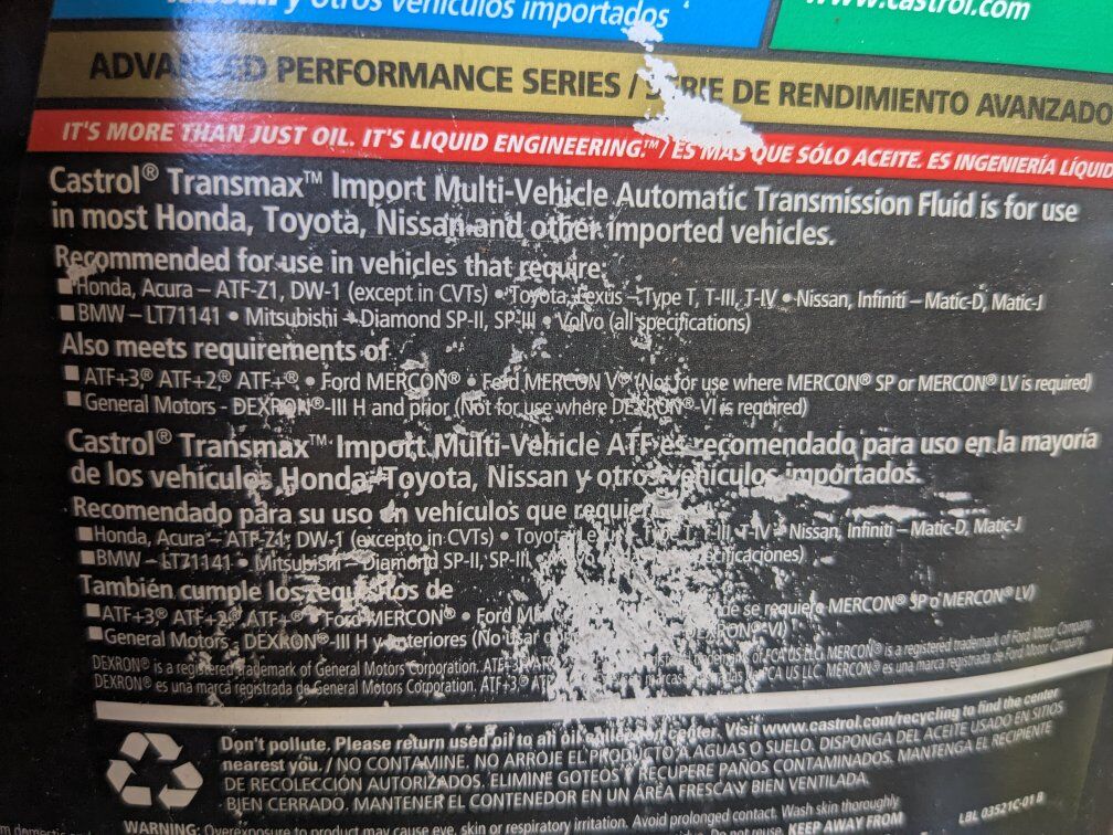 7 new Quarts of Castrol import vehicle Automatic transmission fluid.