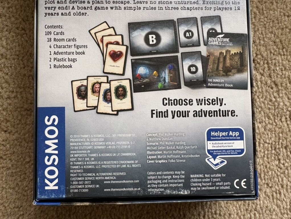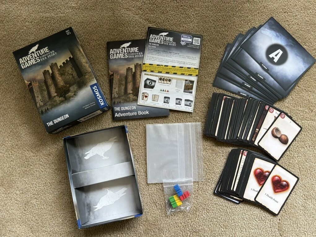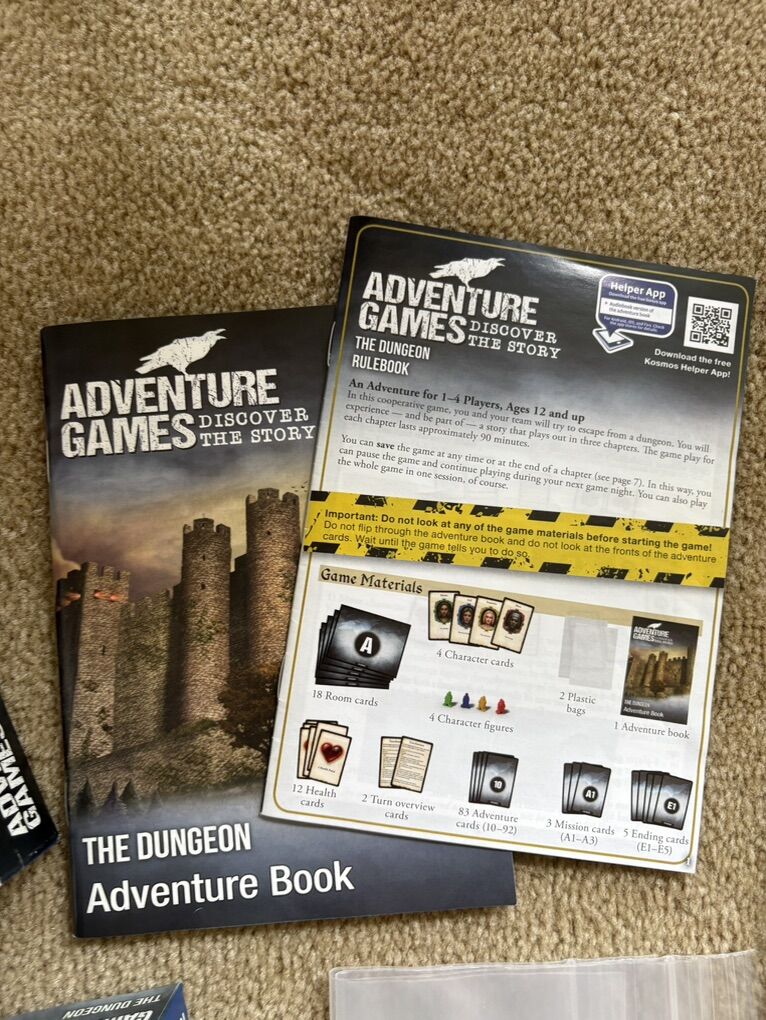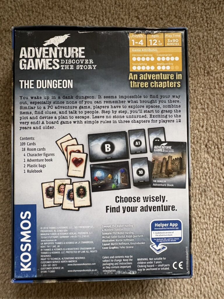 COMPLETE Adventure Games, Discover the Story: The Dungeon. Kosmos, 2019. 1-4 players, age 12+. Complete, no missing pieces. Components in excellent condition. Box corner slightly damaged (see photos). Text only. Cash or Venmo.