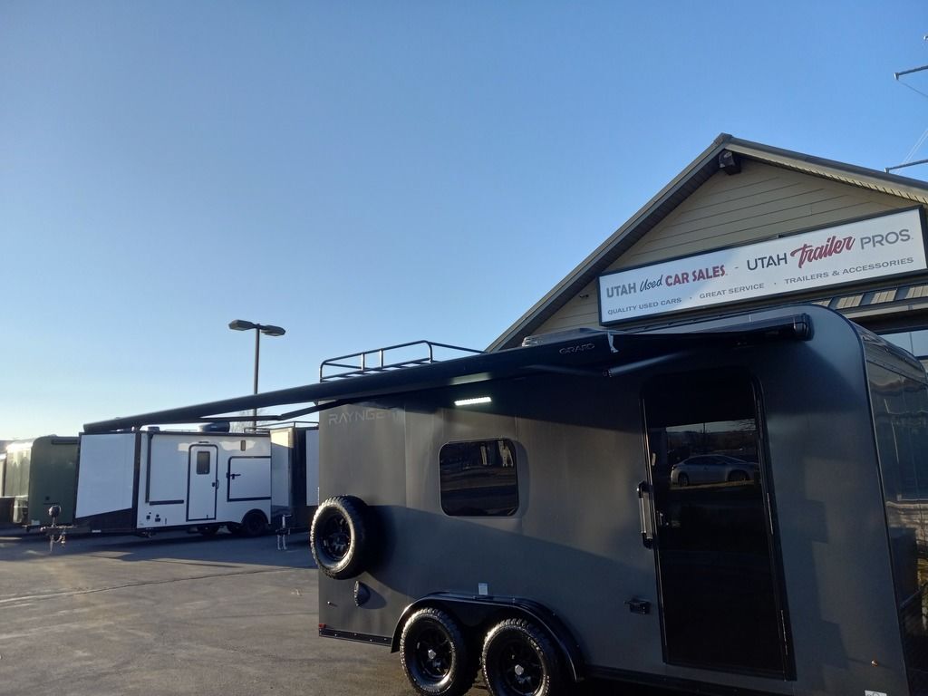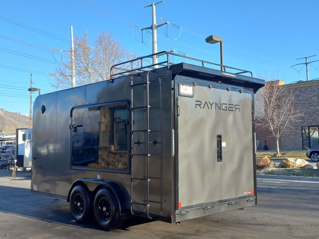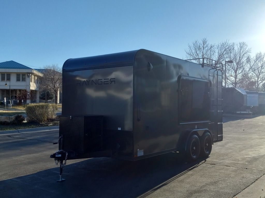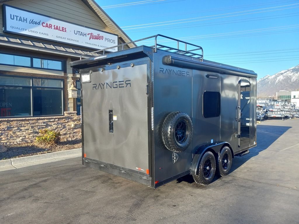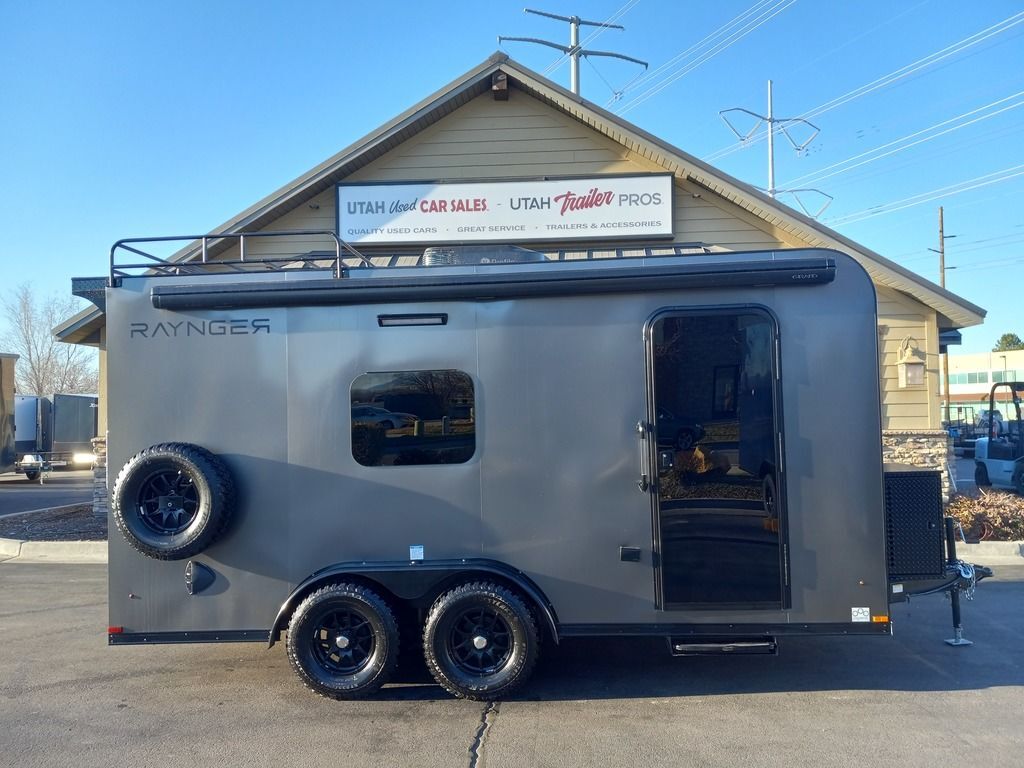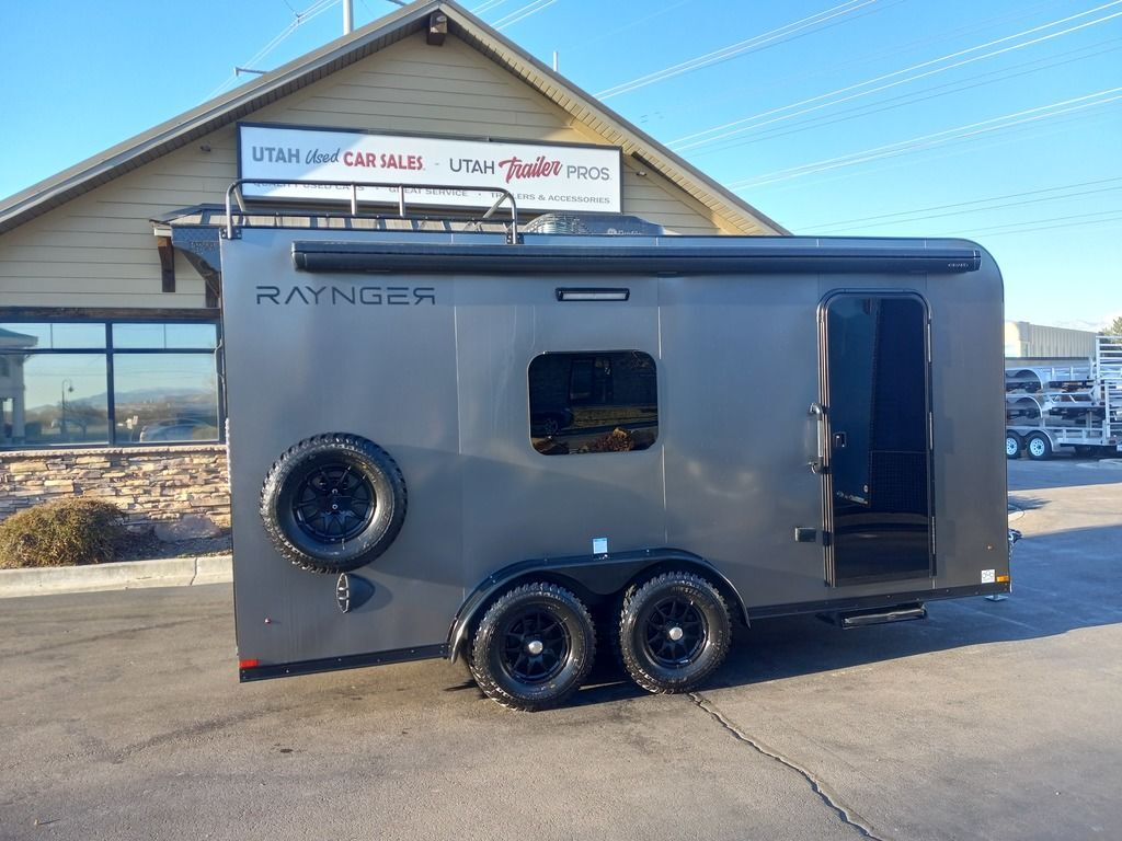 LIMITED TIME $240 A MONTH WITH ZERO DOWN WITH OUR SPECIAL LOCAL CREDIT UNION PARTNER!!! NO PRE-PAYMENT PENALTIES!!! NEW 7.5 WIDE MODEL!!! FITS ANY STOCK SIDE BY SIDE UTV!!! RAYNGER PREMIUM OFF ROAD TOY HAULER CAMPER!!! 18 INCH GROUND CLEARANCE!!! OFF ROAD TIRES!!! FULLY INSULATED!!! HEATING AND A/C!!! WET SOUND STEREO!!! FOLD OUT/POP OUT TENT WITH MATTRESS!!! Ventilated Locking Generator Box!!! UPGRADED TORSION AXLES!!! 14.2 Foot Long Garage Space!!! And Much MUCH MORE!!! Check out our Specs!!! Also available in 18 foot models. 18 Foot Models can have 3 Fold Out Beds/Pop Out Tents. 16 Foot and 18 Foot Models will fit ANY stock 4 Seater Side by Side • 6” I Beam Frame• Flat Top Design• Flat Front Design• Wall Posts 16” on Center• Cross Members 16” on Center• Roof Bows 16” on Center• Rust Inhibiting Z-Tech Protection on Chassis• Ameraguard on Tongue• Ameraguard on Rear Bumper• Ameraguard Around All Door Openings and Stepwell• Ameraguard Around Edges of Ramp Door• 3500 LB Spring Axles• 2-5/16” Coupler• One-Piece Aluminum Roof• ST235/75R15 Aluminum Wheels with Chrome Center Caps• 2000# Ramp Door with Eberhard Latch• 30” Tempered Glass RV Door with Screen Door• .030 Exterior Metal with Screwless Sides• 24” Black Stoneguard• 3” Black Bottom Trim• Sand Pad• Black Door Hold• 2.7mm Charcoal Textured Vinyl Ceiling • 9mm Charcoal Textured Vinyl Walls• 3/4” Engineered Wood Floor with Rubber Coin Overlay• (6) 1200 LB Floor D rings Installed with Backer Plates• LED Clearance Lights and Tail Lights• LED Back-up Lights• No Show Wheel Box• Spoiler with Toggle Switch• RV Step• 7’ Interior• (2) 17” Chrome Base Lights with Switch• (1) Black 17” Spot Light with Switch• (1) 30 Amp Panel with Marine Plug• A/C Unit with Heat Strip• (3) Interior Recepts• (1) Exterior Recept• 12V Battery and Charge Line• Prep for Backup Camera• Wet Sounds System• (3) Blue Interior Cabinet Lights• (1) 6’ Section of Flex Lights• Black ATP Rear Header and Hoop• Black ATP Fenders• Insulated Walls & Ceiling• Base Cabinets• Overhead Cabinets with Netting Over Compartments• Pop Out Tent• Black ATP Storage/Generator Box Mounted On Tongue 7SW094135