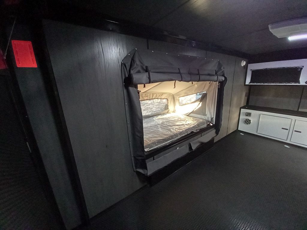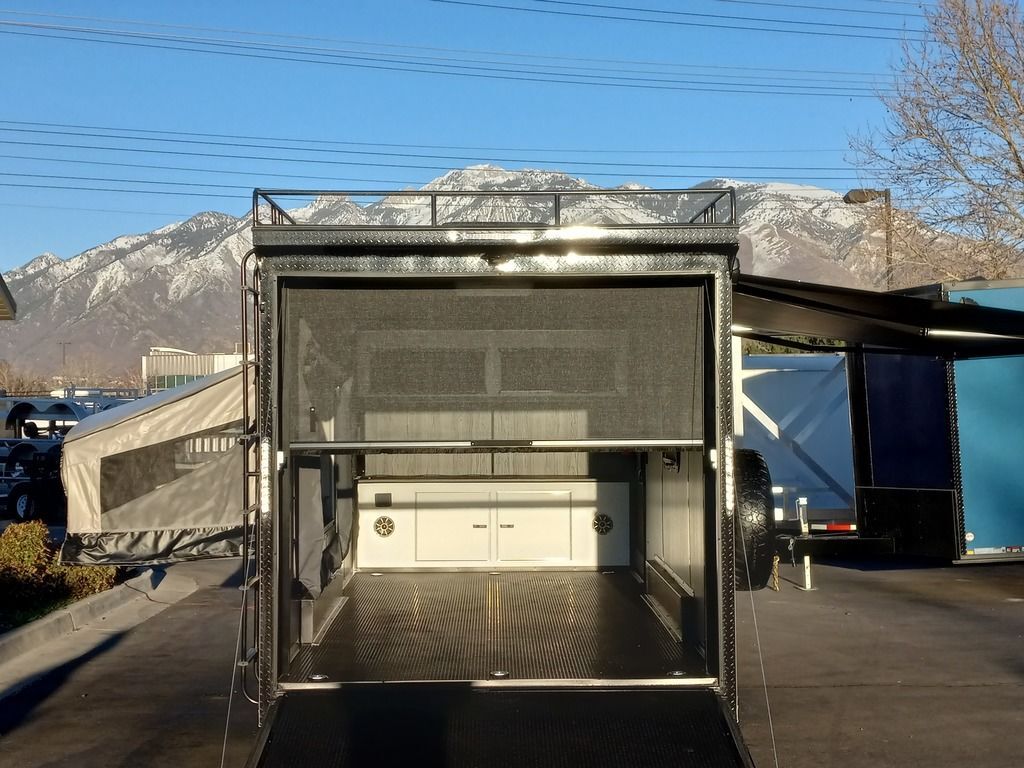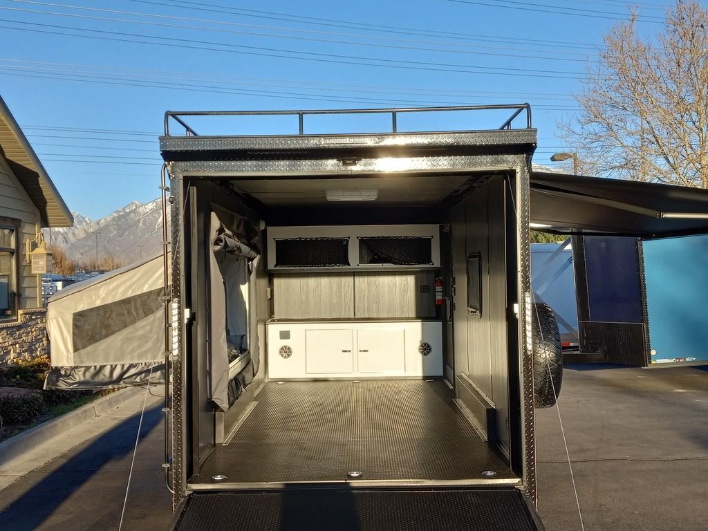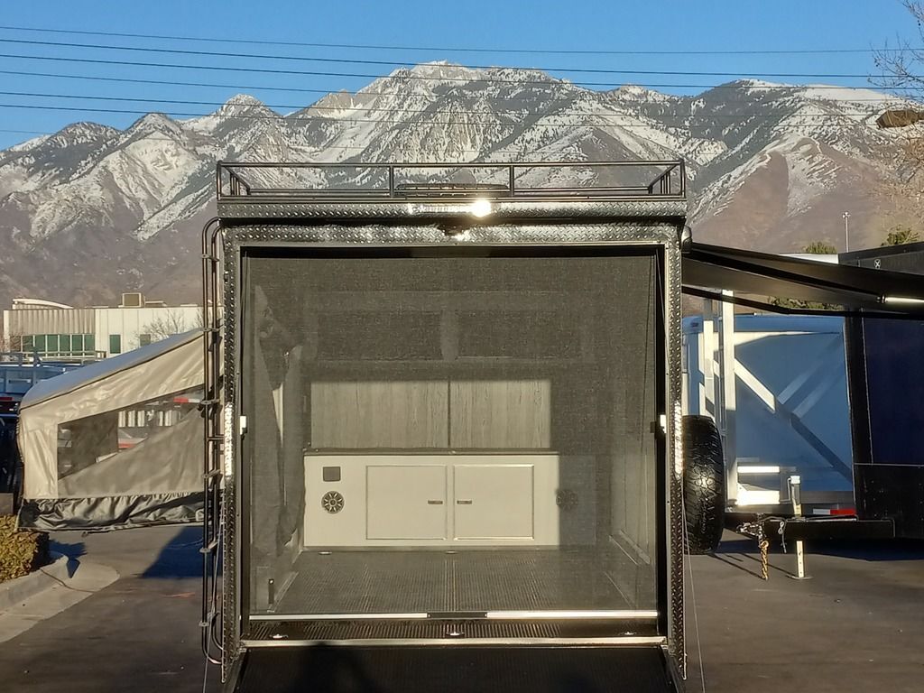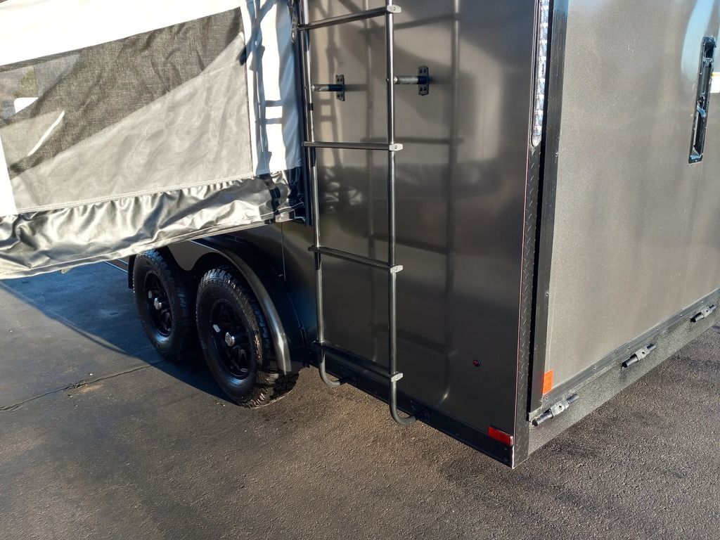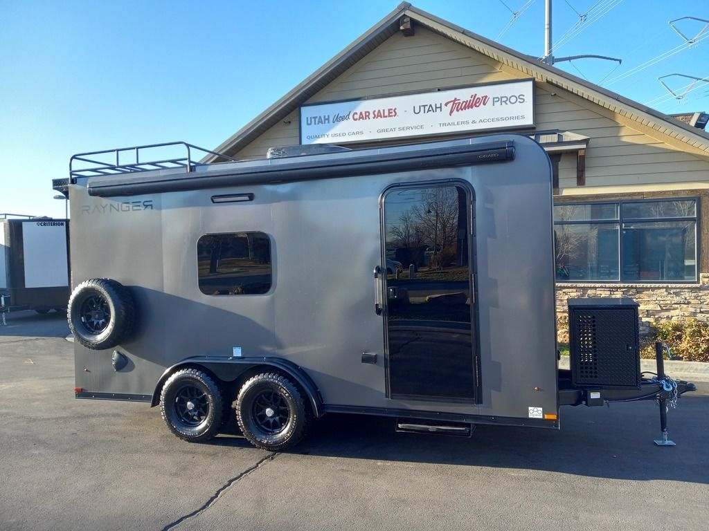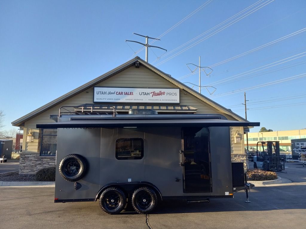 LIMITED TIME $240 A MONTH WITH ZERO DOWN WITH OUR SPECIAL LOCAL CREDIT UNION PARTNER!!! NO PRE-PAYMENT PENALTIES!!! NEW 7.5 WIDE MODEL!!! FITS ANY STOCK SIDE BY SIDE UTV!!! RAYNGER PREMIUM OFF ROAD TOY HAULER CAMPER!!! 18 INCH GROUND CLEARANCE!!! OFF ROAD TIRES!!! FULLY INSULATED!!! HEATING AND A/C!!! WET SOUND STEREO!!! FOLD OUT/POP OUT TENT WITH MATTRESS!!! Ventilated Locking Generator Box!!! UPGRADED TORSION AXLES!!! 14.2 Foot Long Garage Space!!! And Much MUCH MORE!!! Check out our Specs!!! Also available in 18 foot models. 18 Foot Models can have 3 Fold Out Beds/Pop Out Tents. 16 Foot and 18 Foot Models will fit ANY stock 4 Seater Side by Side • 6” I Beam Frame• Flat Top Design• Flat Front Design• Wall Posts 16” on Center• Cross Members 16” on Center• Roof Bows 16” on Center• Rust Inhibiting Z-Tech Protection on Chassis• Ameraguard on Tongue• Ameraguard on Rear Bumper• Ameraguard Around All Door Openings and Stepwell• Ameraguard Around Edges of Ramp Door• 3500 LB Spring Axles• 2-5/16” Coupler• One-Piece Aluminum Roof• ST235/75R15 Aluminum Wheels with Chrome Center Caps• 2000# Ramp Door with Eberhard Latch• 30” Tempered Glass RV Door with Screen Door• .030 Exterior Metal with Screwless Sides• 24” Black Stoneguard• 3” Black Bottom Trim• Sand Pad• Black Door Hold• 2.7mm Charcoal Textured Vinyl Ceiling • 9mm Charcoal Textured Vinyl Walls• 3/4” Engineered Wood Floor with Rubber Coin Overlay• (6) 1200 LB Floor D rings Installed with Backer Plates• LED Clearance Lights and Tail Lights• LED Back-up Lights• No Show Wheel Box• Spoiler with Toggle Switch• RV Step• 7’ Interior• (2) 17” Chrome Base Lights with Switch• (1) Black 17” Spot Light with Switch• (1) 30 Amp Panel with Marine Plug• A/C Unit with Heat Strip• (3) Interior Recepts• (1) Exterior Recept• 12V Battery and Charge Line• Prep for Backup Camera• Wet Sounds System• (3) Blue Interior Cabinet Lights• (1) 6’ Section of Flex Lights• Black ATP Rear Header and Hoop• Black ATP Fenders• Insulated Walls & Ceiling• Base Cabinets• Overhead Cabinets with Netting Over Compartments• Pop Out Tent• Black ATP Storage/Generator Box Mounted On Tongue 7SW094135