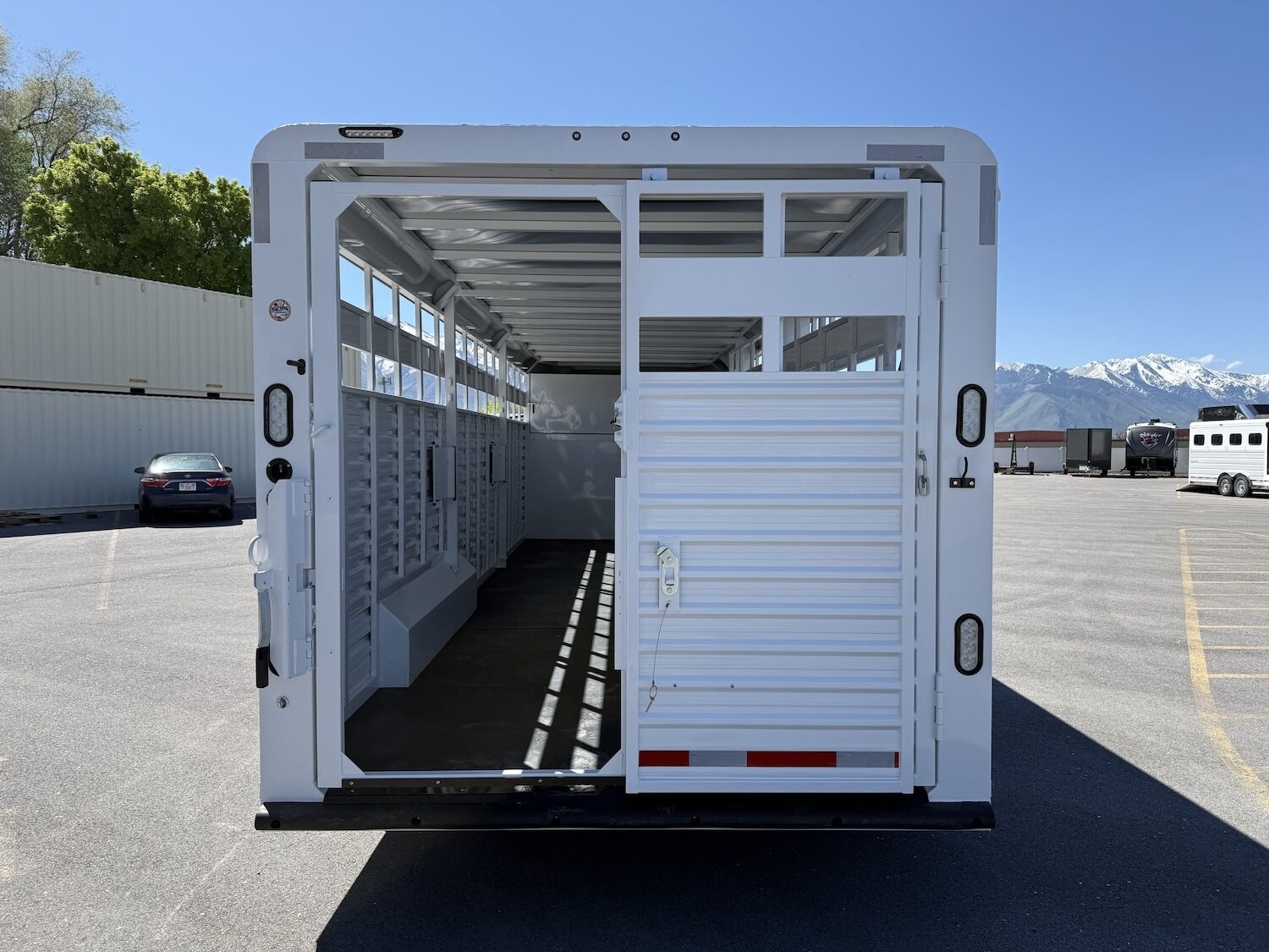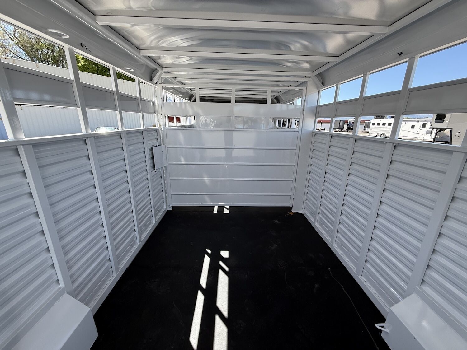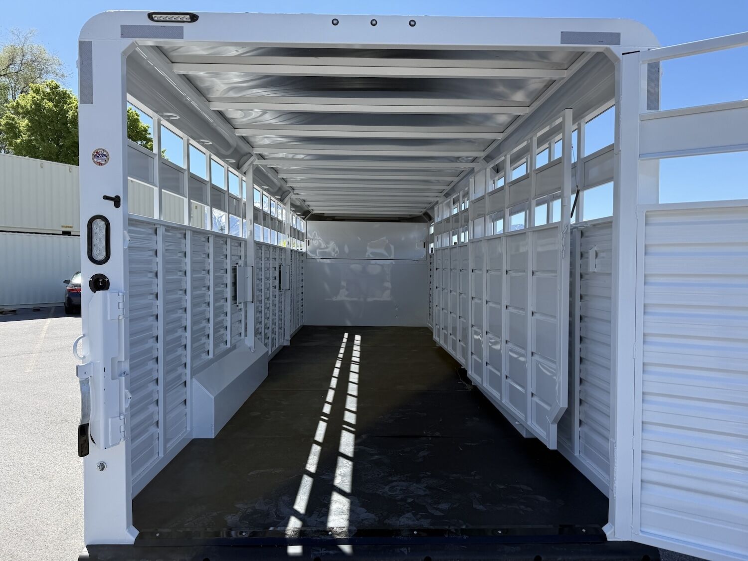 The Trails West Hot Shot gooseneck trailer is a 7’6″ wide x 7’ tall livestock trailer. The design of this trailer has electro-galvanized seamless corrugated steel sides for strength and durability. This extra-safe stock trailer is light weight and built for safety. This is a great pulling trailer because of the aerodynamic design of the front, cutting the wind while still providing enough space in the gooseneck area for an optional tack package. Check out this great priced trailer that is built for real stock men and women.