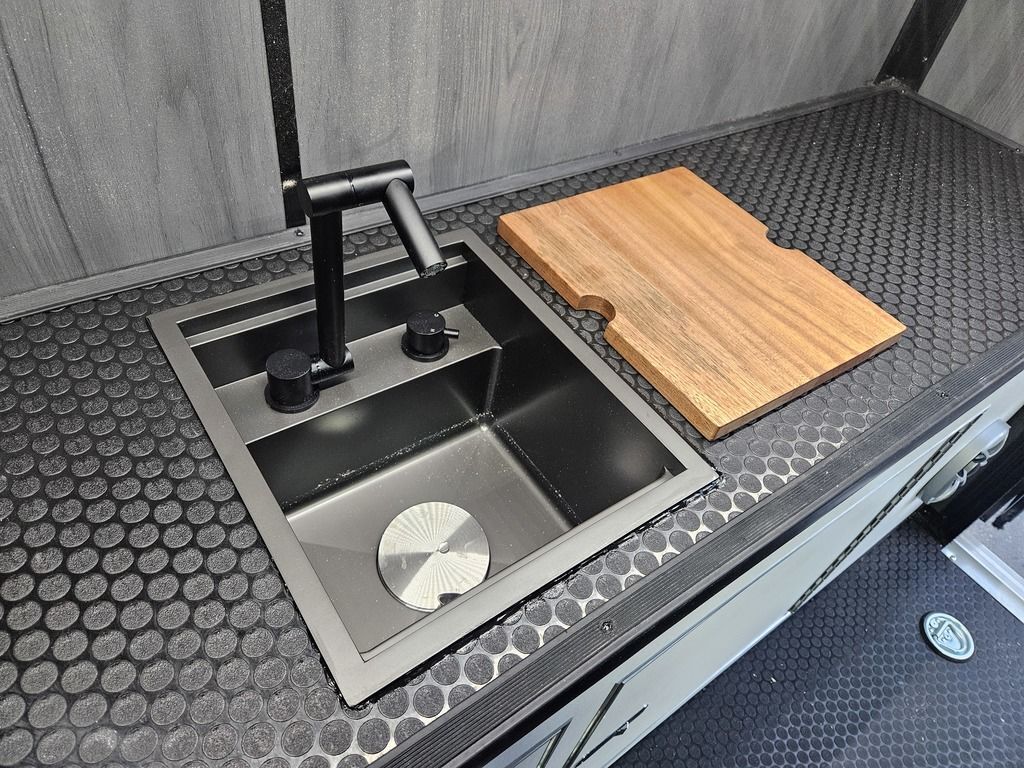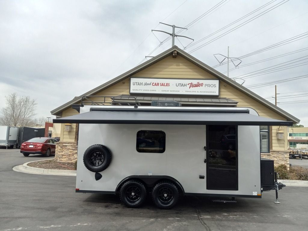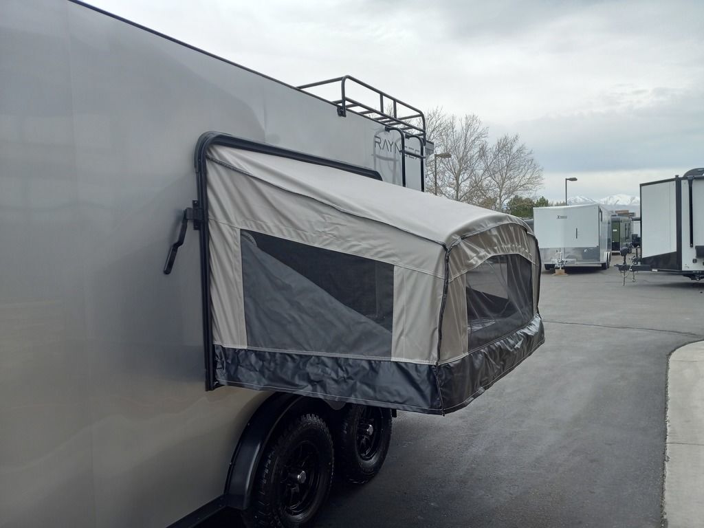 LIMITED TIME $259 A MONTH WITH ZERO DOWN WITH OUR SPECIAL LOCAL CREDIT UNION PARTNER!!! NO PRE-PAYMENT PENALTIES!!! NEW 7.5 WIDE MODEL!!! FITS ANY STOCK SIDE BY SIDE UTV!!! NEWLY ADDED FEATURES, 25 GALLON FRESH WATER TANK WITH WATER PUMP AND WATER HEATER!!! STOW AND GO SINK WITH CUTTING BOARD!!! OUTSIDE SHOWER!!! RAYNGER PREMIUM OFF ROAD TOY HAULER CAMPER!!! 18 INCH GROUND CLEARANCE!!! OFF ROAD TIRES!!! FULLY INSULATED!!! HEATING AND A/C!!! WET SOUND STEREO!!! FOLD OUT/POP OUT TENT WITH MATTRESS!!! Ventilated Locking Generator Box!!! UPGRADED TORSION AXLES!!! 14.2 Foot Long Garage Space!!! And Much MUCH MORE!!! Check out our Specs!!! Also available in 18 foot models. 18 Foot Models can have 3 Fold Out Beds/Pop Out Tents. 16 Foot and 18 Foot Models will fit ANY stock 4 Seater Side by Side • 6” I Beam Frame• Flat Top Design• Flat Front Design• Wall Posts 16” on Center• Cross Members 16” on Center• Roof Bows 16” on Center• Rust Inhibiting Z-Tech Protection on Chassis• Ameraguard on Tongue• Ameraguard on Rear Bumper• Ameraguard Around All Door Openings and Stepwell• Ameraguard Around Edges of Ramp Door• 3500 LB Spring Axles• 2-5/16” Coupler• One-Piece Aluminum Roof• ST235/75R15 Aluminum Wheels with Chrome Center Caps• 2000# Ramp Door with Eberhard Latch• 30” Tempered Glass RV Door with Screen Door• .030 Exterior Metal with Screwless Sides• 24” Black Stoneguard• 3” Black Bottom Trim• Sand Pad• Black Door Hold• 2.7mm Charcoal Textured Vinyl Ceiling • 9mm Charcoal Textured Vinyl Walls• 3/4” Engineered Wood Floor with Rubber Coin Overlay• (6) 1200 LB Floor D rings Installed with Backer Plates• LED Clearance Lights and Tail Lights• LED Back-up Lights• No Show Wheel Box• Spoiler with Toggle Switch• RV Step• 7’ Interior• (2) 17” Chrome Base Lights with Switch• (1) Black 17” Spot Light with Switch• (1) 30 Amp Panel with Marine Plug• A/C Unit with Heat Strip• (3) Interior Recepts• (1) Exterior Recept• 12V Battery and Charge Line• Prep for Backup Camera• Wet Sounds System• (3) Blue Interior Cabinet Lights• (1) 6’ Section of Flex Lights• Black ATP Rear Header and Hoop• Black ATP Fenders• Insulated Walls & Ceiling• Base Cabinets• Overhead Cabinets with Netting Over Compartments• Pop Out Tent• Black ATP Storage/Generator Box Mounted On Tongue 7SW093920