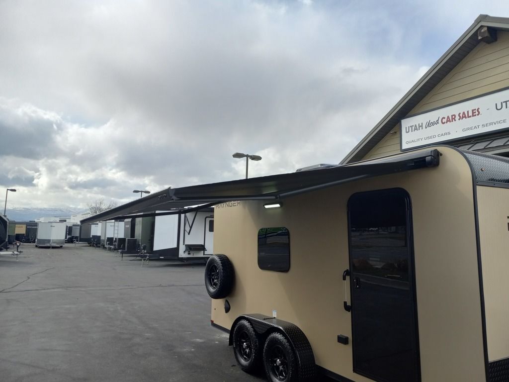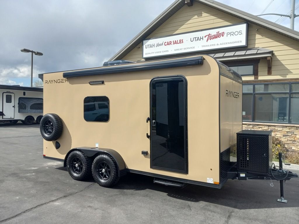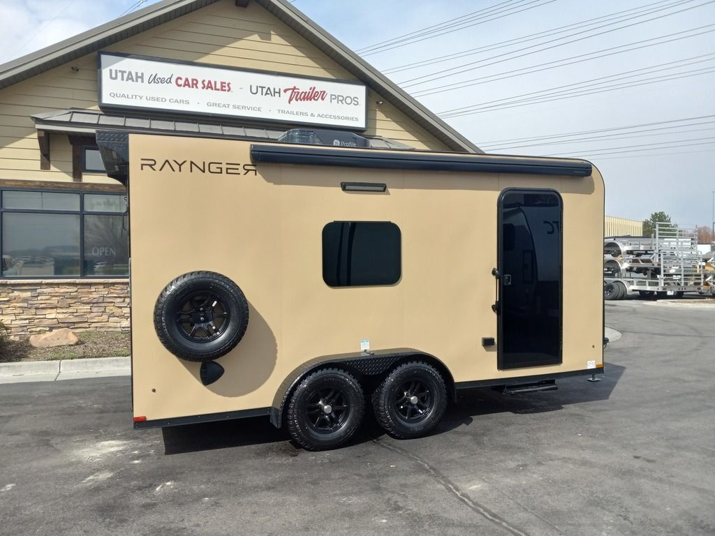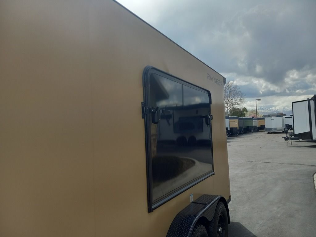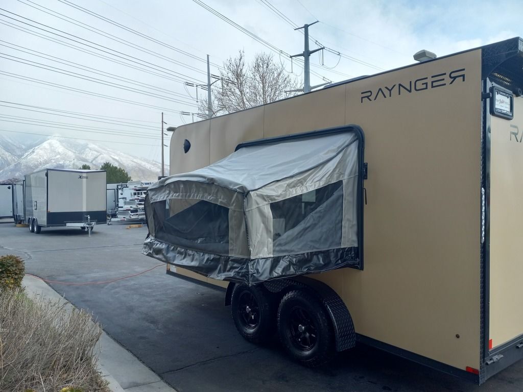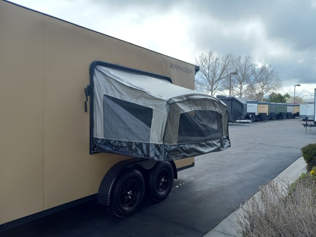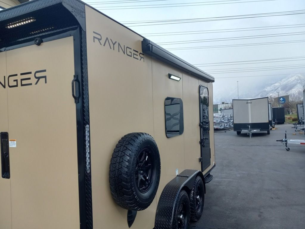 LIMITED TIME $225 A MONTH WITH ZERO DOWN WITH OUR SPECIAL LOCAL CREDIT UNION PARTNER!!! NO PRE-PAYMENT PENALTIES!!! NEW 7 WIDE MODEL!!! FITS ANY STOCK SIDE BY SIDE UTV!!! RAYNGER PREMIUM OFF ROAD TOY HAULER CAMPER!!! 18 INCH GROUND CLEARANCE!!! OFF ROAD TIRES!!! FULLY INSULATED!!! HEATING AND A/C!!! WET SOUND STEREO!!! FOLD OUT/POP OUT TENT WITH MATTRESS!!! Ventilated Locking Generator Box!!! UPGRADED TORSION AXLES!!! 14.2 Foot Long Garage Space!!! And Much MUCH MORE!!! Check out our Specs!!! Also available in 18 foot models. 18 Foot Models can have 3 Fold Out Beds/Pop Out Tents. 16 Foot and 18 Foot Models will fit ANY stock 4 Seater Side by Side • 6” I Beam Frame• Flat Top Design• Flat Front Design• Wall Posts 16” on Center• Cross Members 16” on Center• Roof Bows 16” on Center• Rust Inhibiting Z-Tech Protection on Chassis• Ameraguard on Tongue• Ameraguard on Rear Bumper• Ameraguard Around All Door Openings and Stepwell• Ameraguard Around Edges of Ramp Door• 3500 LB Spring Axles• 2-5/16” Coupler• One-Piece Aluminum Roof• ST235/75R15 Aluminum Wheels with Chrome Center Caps• 2000# Ramp Door with Eberhard Latch• 30” Tempered Glass RV Door with Screen Door• .030 Exterior Metal with Screwless Sides• 24” Black Stoneguard• 3” Black Bottom Trim• Sand Pad• Black Door Hold• 2.7mm Charcoal Textured Vinyl Ceiling • 9mm Charcoal Textured Vinyl Walls• 3/4” Engineered Wood Floor with Rubber Coin Overlay• (6) 1200 LB Floor D rings Installed with Backer Plates• LED Clearance Lights and Tail Lights• LED Back-up Lights• No Show Wheel Box• Spoiler with Toggle Switch• RV Step• 7’ Interior• (2) 17” Chrome Base Lights with Switch• (1) Black 17” Spot Light with Switch• (1) 30 Amp Panel with Marine Plug• A/C Unit with Heat Strip• (3) Interior Recepts• (1) Exterior Recept• 12V Battery and Charge Line• Prep for Backup Camera• Wet Sounds System• (3) Blue Interior Cabinet Lights• (1) 6’ Section of Flex Lights• Black ATP Rear Header and Hoop• Black ATP Fenders• Insulated Walls & Ceiling• Base Cabinets• Overhead Cabinets with Netting Over Compartments• Pop Out Tent• Black ATP Storage/Generator Box Mounted On Tongue 7sw092522