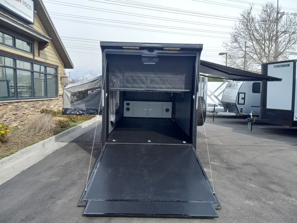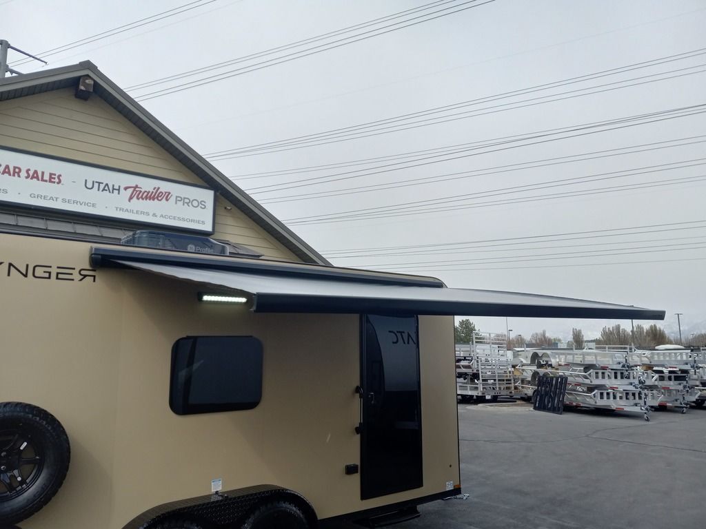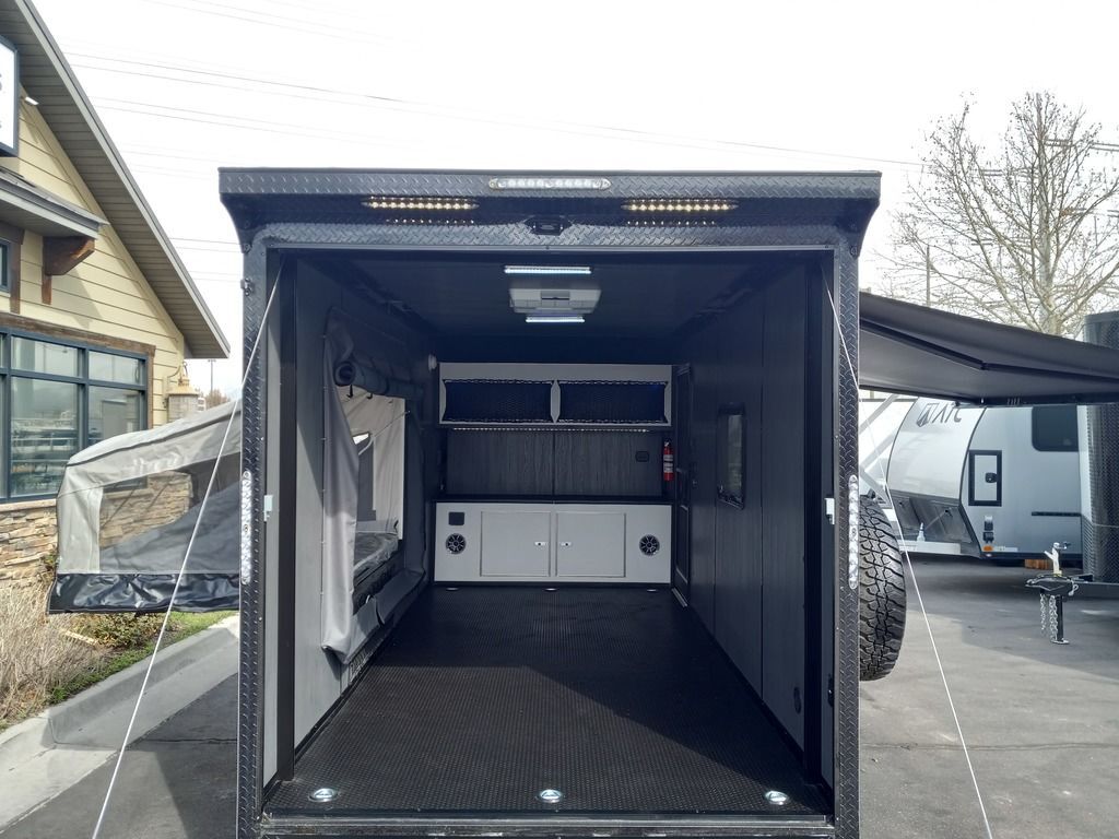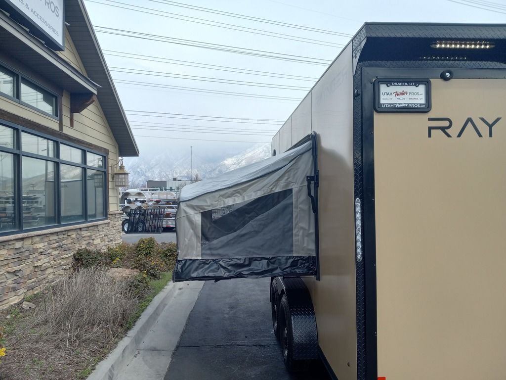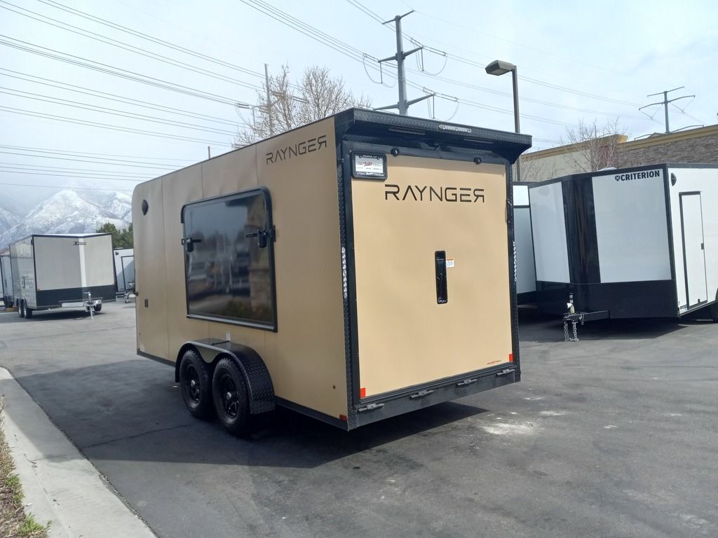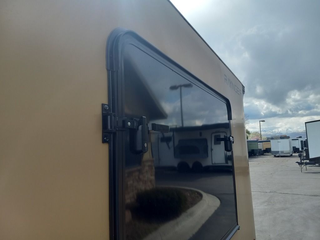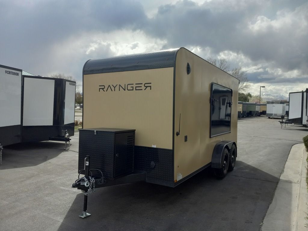 LIMITED TIME $225 A MONTH WITH ZERO DOWN WITH OUR SPECIAL LOCAL CREDIT UNION PARTNER!!! NO PRE-PAYMENT PENALTIES!!! NEW 7 WIDE MODEL!!! FITS ANY STOCK SIDE BY SIDE UTV!!! RAYNGER PREMIUM OFF ROAD TOY HAULER CAMPER!!! 18 INCH GROUND CLEARANCE!!! OFF ROAD TIRES!!! FULLY INSULATED!!! HEATING AND A/C!!! WET SOUND STEREO!!! FOLD OUT/POP OUT TENT WITH MATTRESS!!! Ventilated Locking Generator Box!!! UPGRADED TORSION AXLES!!! 14.2 Foot Long Garage Space!!! And Much MUCH MORE!!! Check out our Specs!!! Also available in 18 foot models. 18 Foot Models can have 3 Fold Out Beds/Pop Out Tents. 16 Foot and 18 Foot Models will fit ANY stock 4 Seater Side by Side • 6” I Beam Frame• Flat Top Design• Flat Front Design• Wall Posts 16” on Center• Cross Members 16” on Center• Roof Bows 16” on Center• Rust Inhibiting Z-Tech Protection on Chassis• Ameraguard on Tongue• Ameraguard on Rear Bumper• Ameraguard Around All Door Openings and Stepwell• Ameraguard Around Edges of Ramp Door• 3500 LB Spring Axles• 2-5/16” Coupler• One-Piece Aluminum Roof• ST235/75R15 Aluminum Wheels with Chrome Center Caps• 2000# Ramp Door with Eberhard Latch• 30” Tempered Glass RV Door with Screen Door• .030 Exterior Metal with Screwless Sides• 24” Black Stoneguard• 3” Black Bottom Trim• Sand Pad• Black Door Hold• 2.7mm Charcoal Textured Vinyl Ceiling • 9mm Charcoal Textured Vinyl Walls• 3/4” Engineered Wood Floor with Rubber Coin Overlay• (6) 1200 LB Floor D rings Installed with Backer Plates• LED Clearance Lights and Tail Lights• LED Back-up Lights• No Show Wheel Box• Spoiler with Toggle Switch• RV Step• 7’ Interior• (2) 17” Chrome Base Lights with Switch• (1) Black 17” Spot Light with Switch• (1) 30 Amp Panel with Marine Plug• A/C Unit with Heat Strip• (3) Interior Recepts• (1) Exterior Recept• 12V Battery and Charge Line• Prep for Backup Camera• Wet Sounds System• (3) Blue Interior Cabinet Lights• (1) 6’ Section of Flex Lights• Black ATP Rear Header and Hoop• Black ATP Fenders• Insulated Walls & Ceiling• Base Cabinets• Overhead Cabinets with Netting Over Compartments• Pop Out Tent• Black ATP Storage/Generator Box Mounted On Tongue 7sw092522