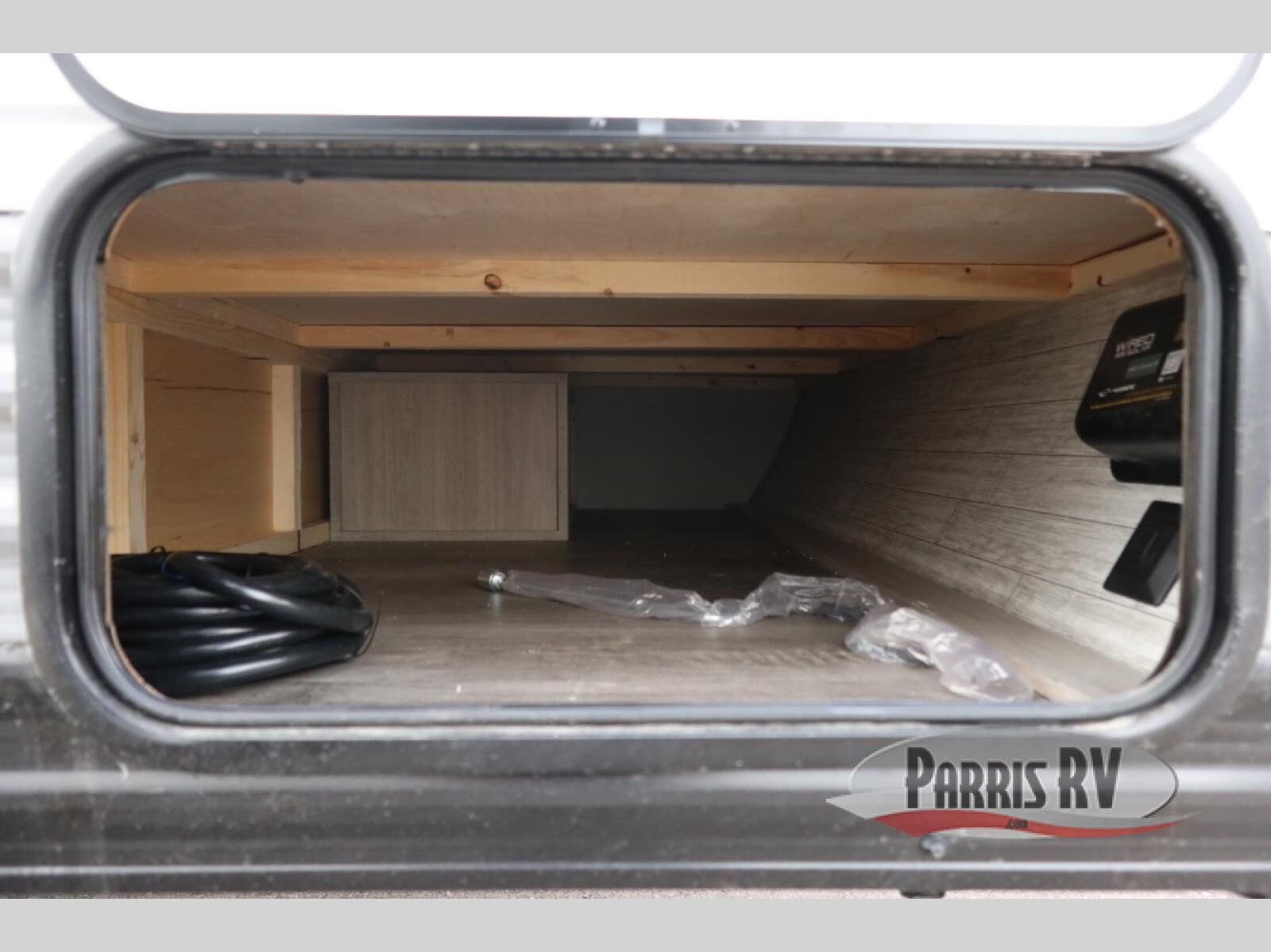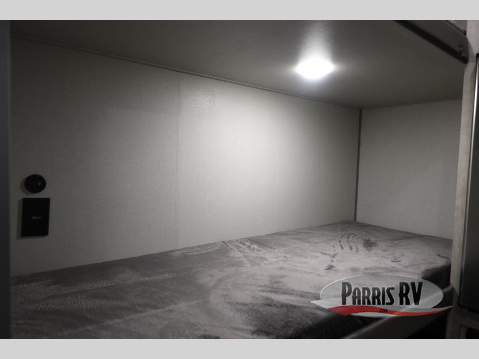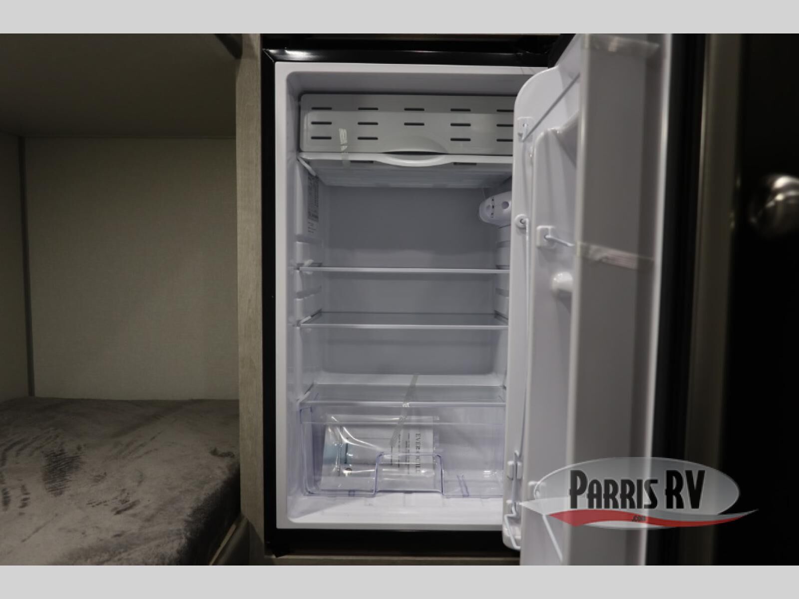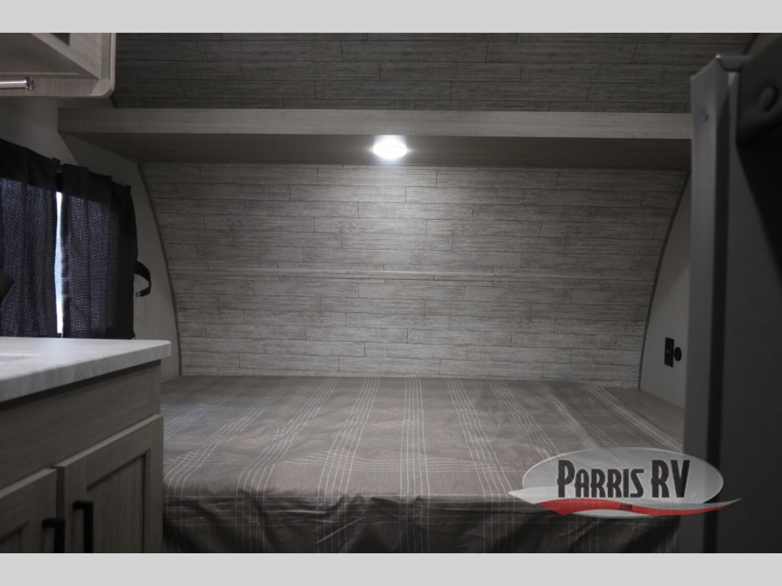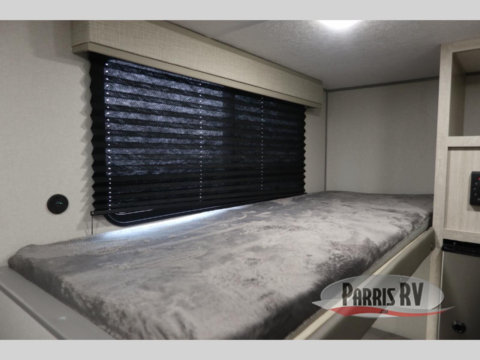Lightweight camping is easier than you think with this travel trailer in tow! The front 54" x 74" queen bed will provide a great night's rest each night, while the little ones or your guests take the bunk beds. There is a handy shelf above the front bed for your belongings plus additional bedroom storage. A private bath includes a 24" x 32" shower and a toilet with a mirror behind it so you can freshen up each day. You'll also find a two burner cooktop and microwave oven to make meals each day plus a 3.3 cu. ft. 12V refrigerator for food storage!
