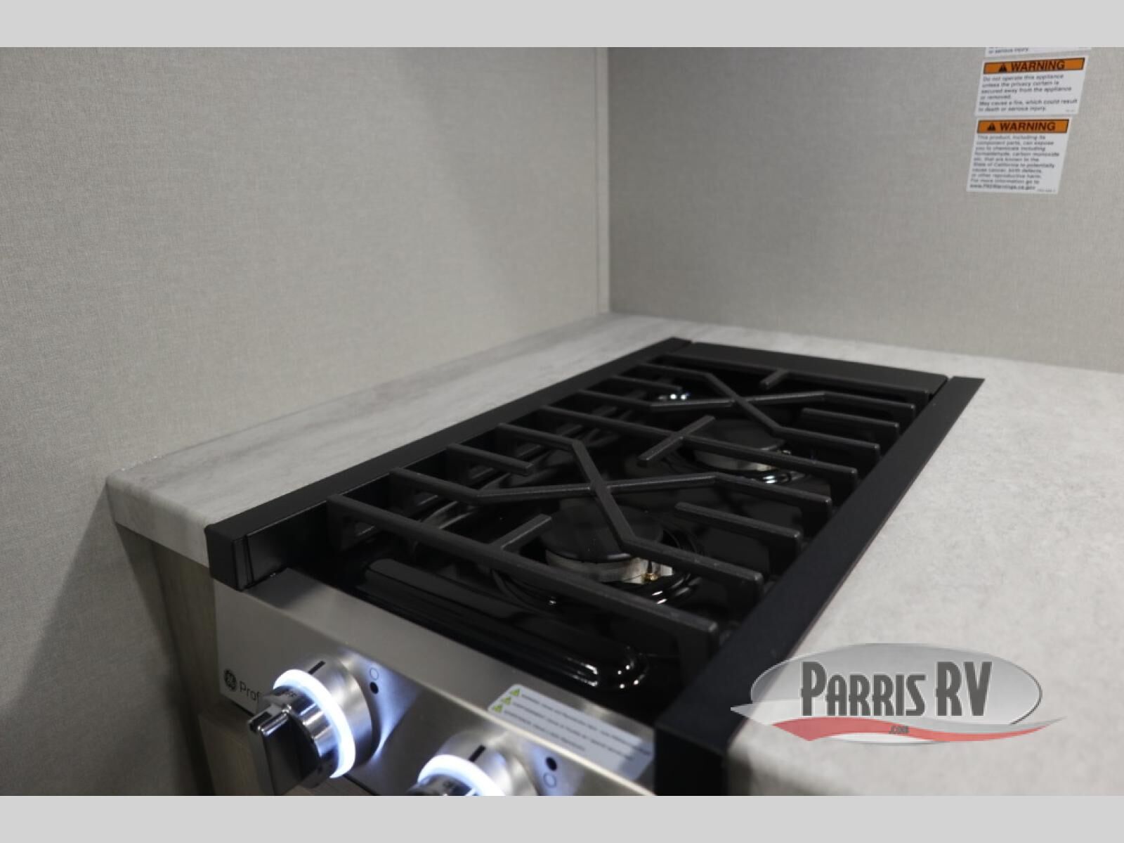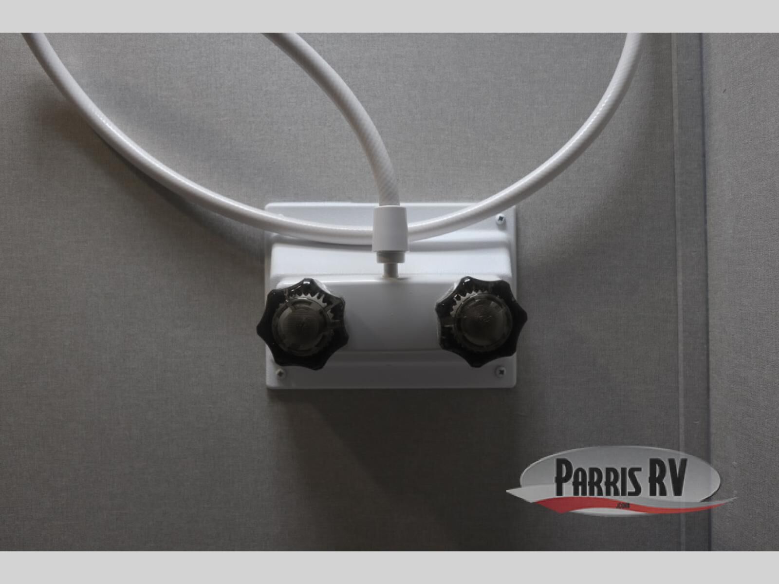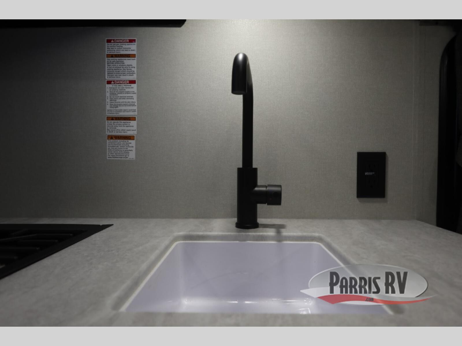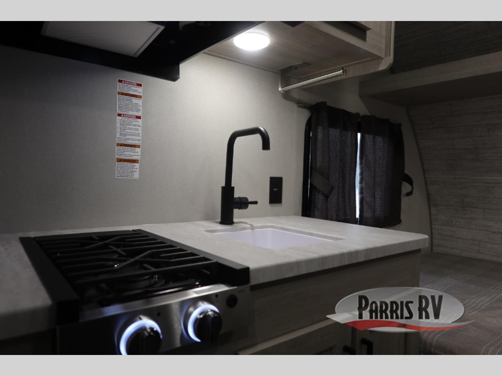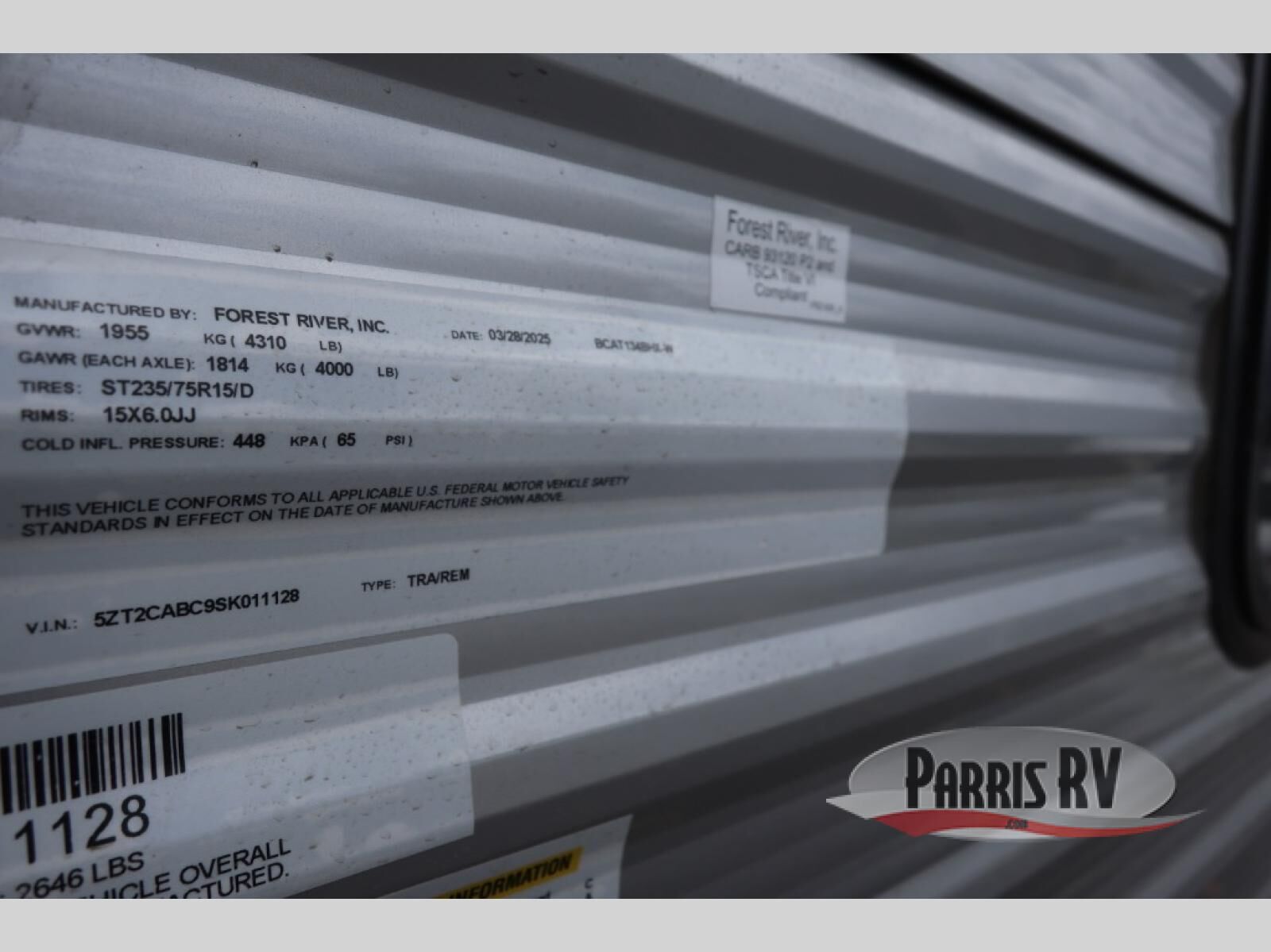 Lightweight camping is easier than you think with this travel trailer in tow! The front 54" x 74" queen bed will provide a great night's rest each night, while the little ones or your guests take the bunk beds. There is a handy shelf above the front bed for your belongings plus additional bedroom storage. A private bath includes a 24" x 32" shower and a toilet with a mirror behind it so you can freshen up each day. You'll also find a two burner cooktop and microwave oven to make meals each day plus a 3.3 cu. ft. 12V refrigerator for food storage!