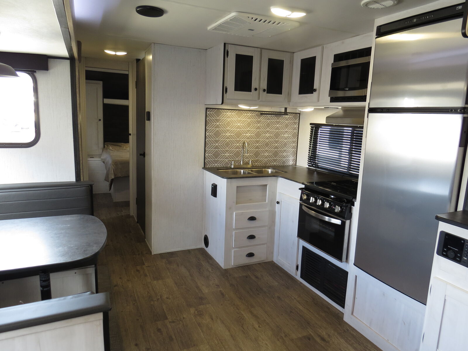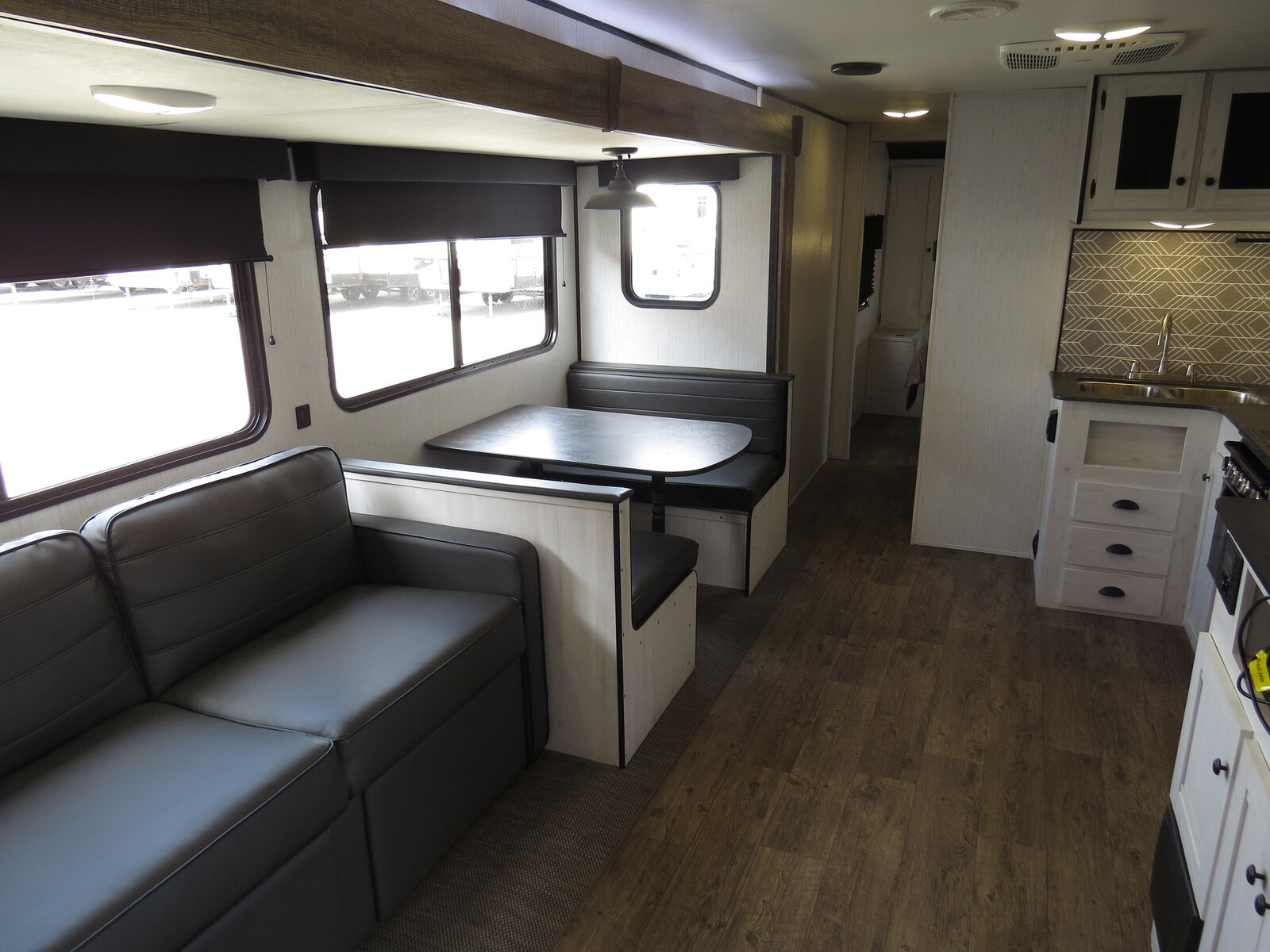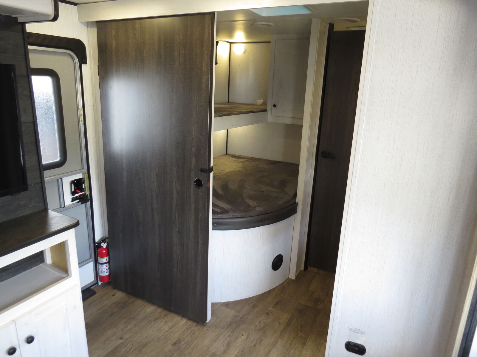 1 1/2 Bathrooms, Rear Bunks, Big Slide Out, Booth Dinette and couch Make down, Front Queen bed!, Big Kitchen, Corner Bathroom, A/C unit and Heat.