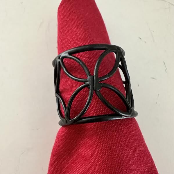 VenmoNapkin rings. Black metal. Set of 12. Petal design. Measures 1.5” H x 1.5” W. Total weight 1 lb. Excellent like new condition.