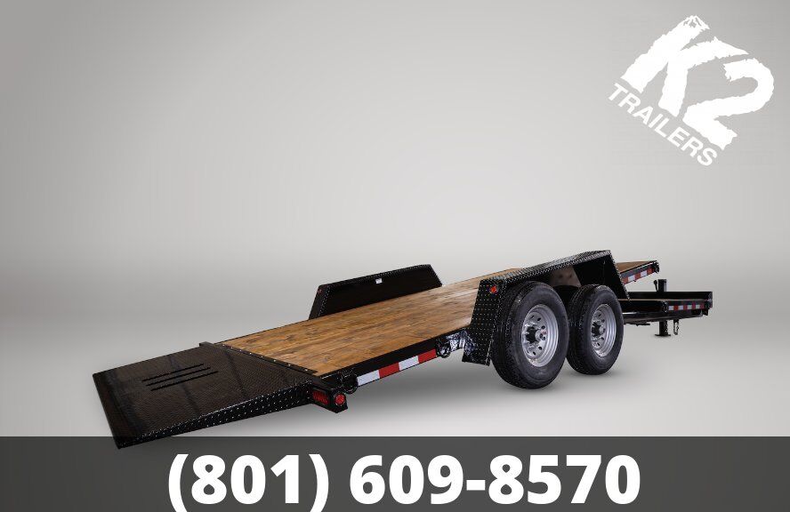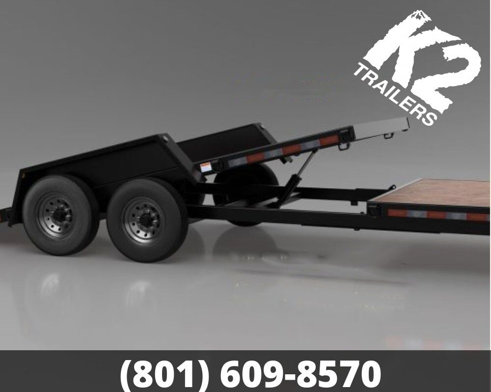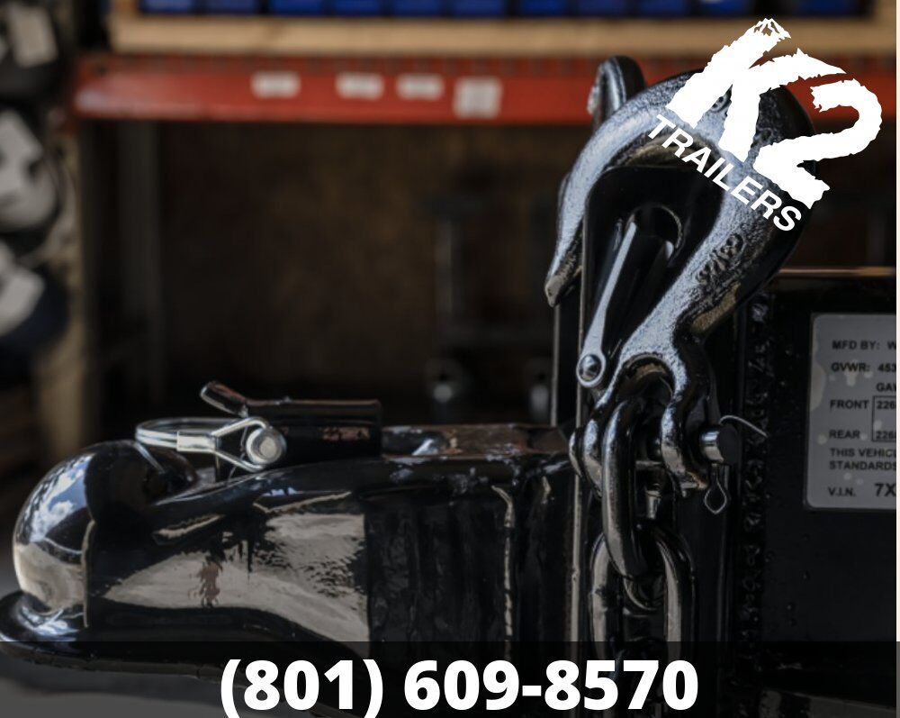 website: www.k2-trailers.com Visit us on Facebook www.facebook.com/k2trailers/ We carry Teton, Snake River, Diamond C, Big Tex, Walton, PJ Trailers and mini excavators/skid steers. Beveled Knife Edge 2" x 5" x ¼" Tube (Double Framed) 3" Channel Cross Members on 16" Centers 8K Heavy Duty Dexter Oil Bath Axles Electric Self Adjusting Brakes Full Length Rubrail and Stake Pockets ST215/75R17.5 "j" 18 Ply Tires 8 Bolt 17.5" Black Mod Wheels 3/16" Diamond Plated Fenders Premium Powder Coat with OTR Protective Additives and Zirconium Pretreatment Wash for Adhesion 2"x10" Oil Treated Douglas Fir Deck Spare Mount on Tongue 2 5/16" Adjustable Coupler 12K Side Wind Drop Leg Jack Locking Toolbox on Tongue Removable Zinc Plated Safetly Chains with Stow Hooks Grommet Mounted LED Lights Gravity Cylinder