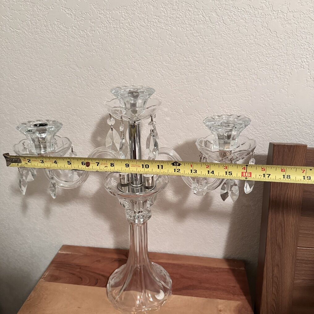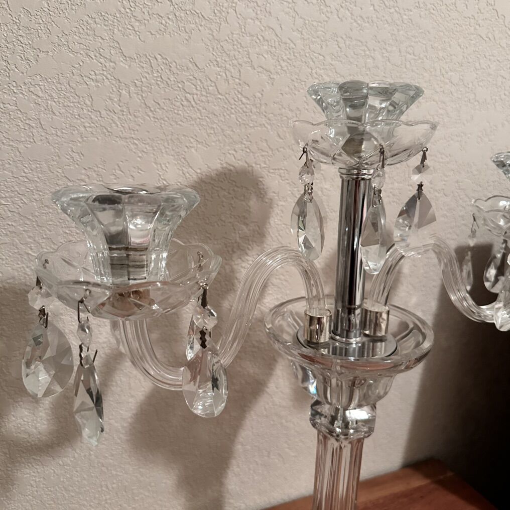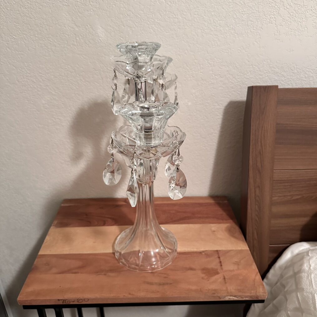 VenmoCrystal Clear Candle Holder Good clean condition, needs some tuning on loose bowls, otherwise no cracks or chips. Very pretty piece.