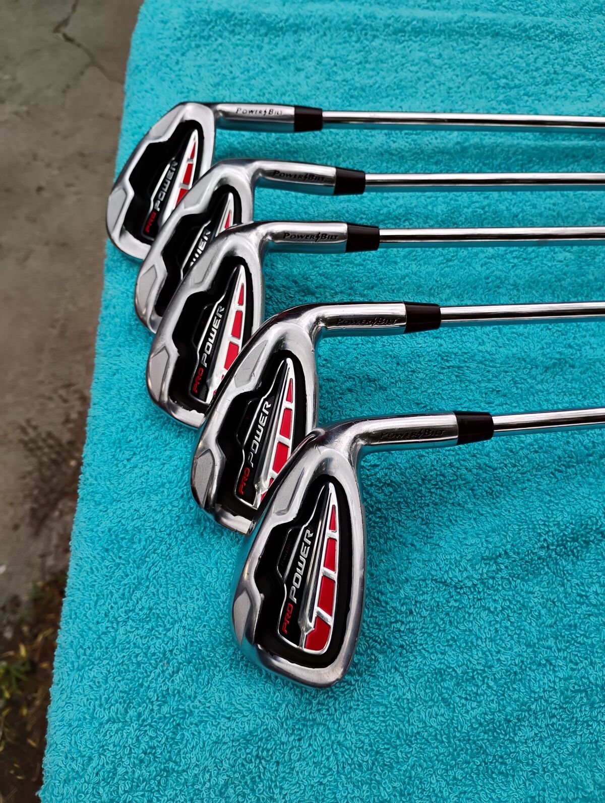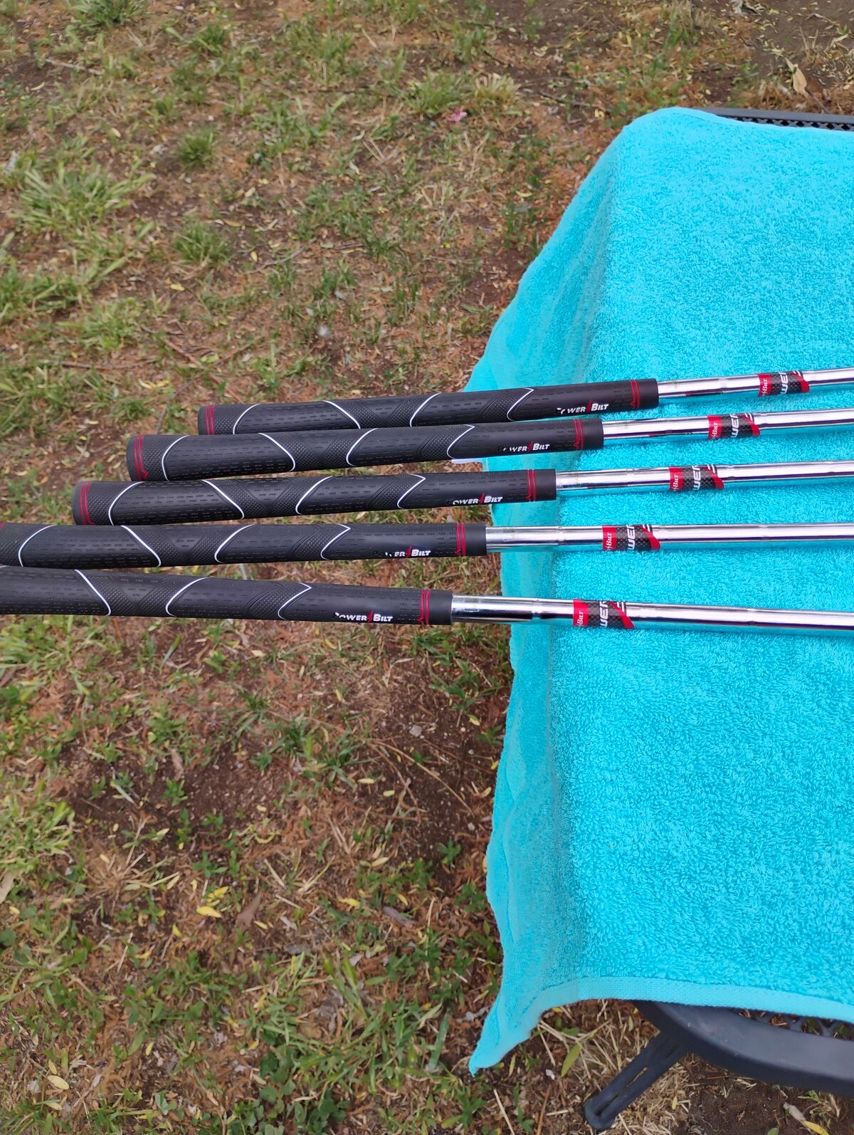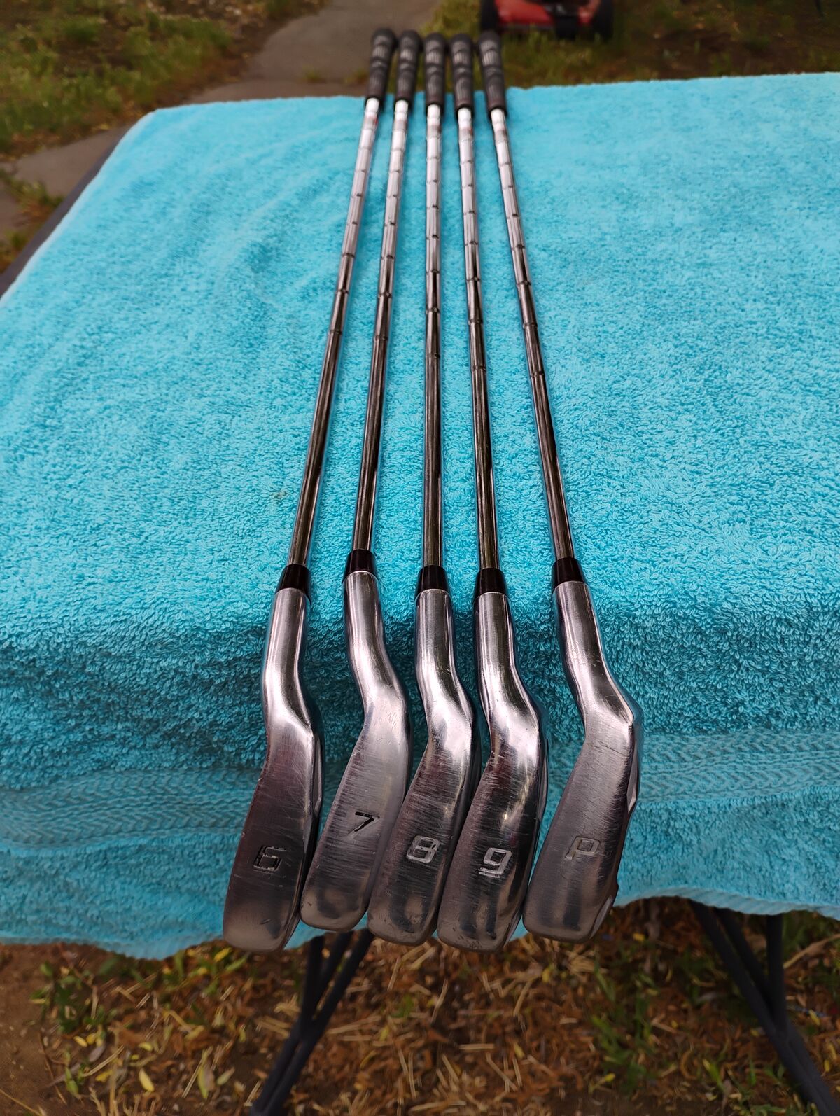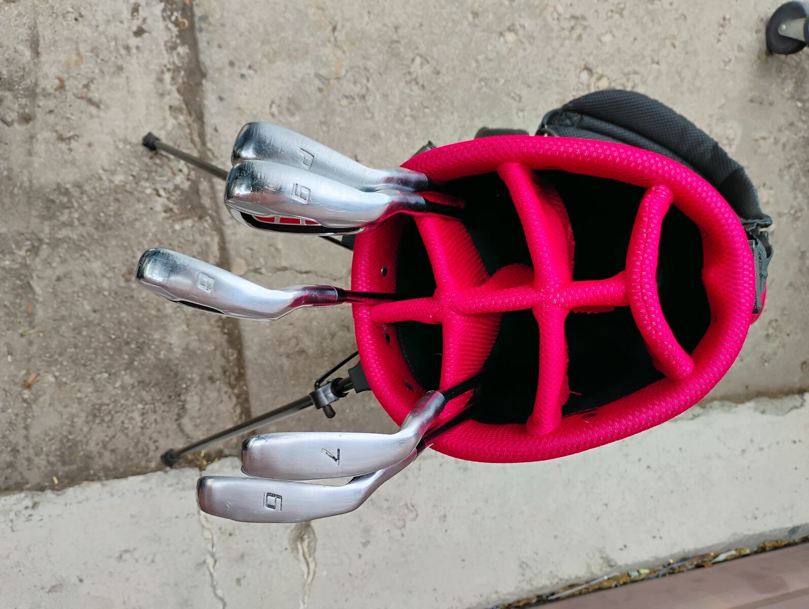 VenmoVery good condition. Iron's 6-P. 5 total clubs. Bag 7 Slot and zippered pockets 34.75 high. Clubs measure #6 , 40 in. P, 37.75 In hi.