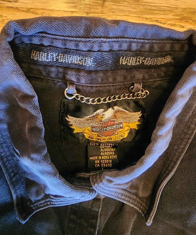 Crafted from 100% cotton, this regular fit shirt jacket is machine washable and easy to care for. The jacket has pockets. Show off your style with this Harley Davidson denim jacket that is perfect for anyone who loves the Harley Davidson brand and the metal theme.