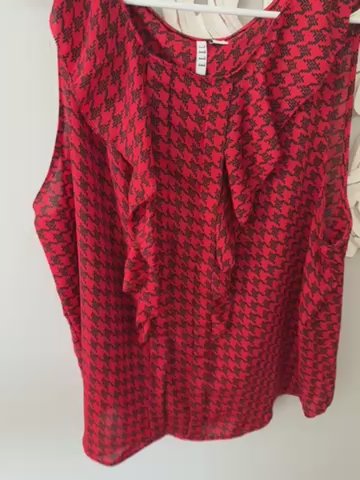 VenmoThis is an excellent condition. Darling on. It’s more of a dressy style. No holes or stains. Pet free smoke free home. This is 100% polyester. To see all other women’s listing, tab that says more from the seller or text me for pictures. Has a darling ruffle detail around the neck and through the front.