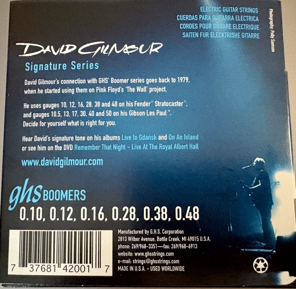VenmoGHS David Gilmour Boomer Electric Guitar string sets. Gauge 10-48 NEW SEALED IN BOX 10 sets available.