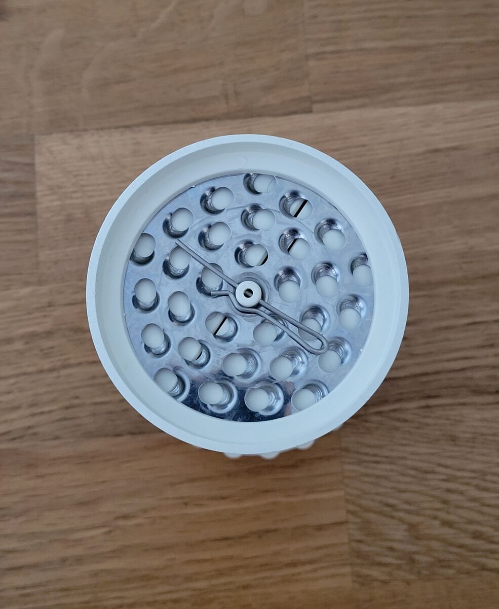 VenmoIncludes 2 different shaped stainless steel grids/blades. Quick and safe grating by pressing and spinning grater’s head. Easy to clean. Measures 3” in diameter and 3.75” tall. Sells for $18.00 on Amazon.