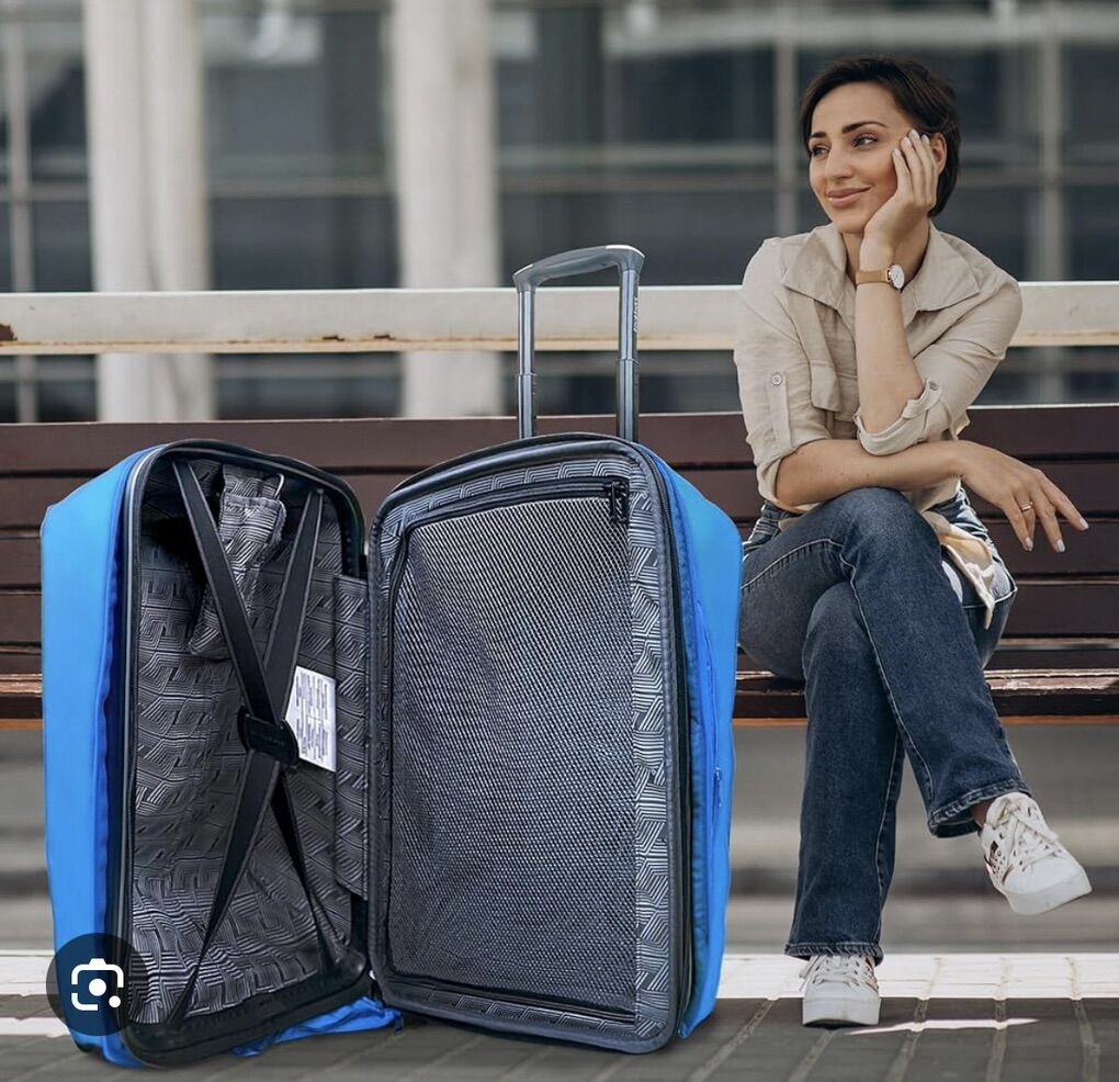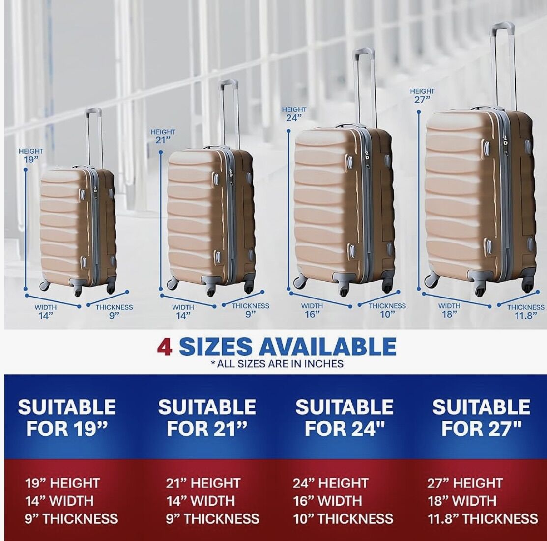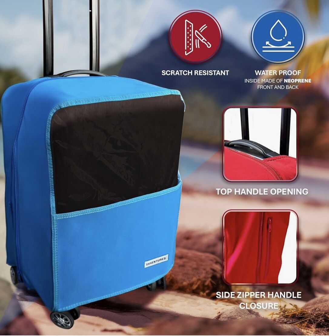 VenmoDurable Waterproof Luggage Cover Made With Neoprene - Elastic Sides For Compatible Fit, Fashionable Travel and Clear Plastic Identification 19-27 Luggages (BLUE, 24)