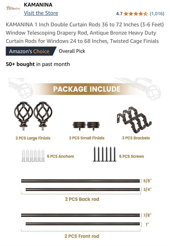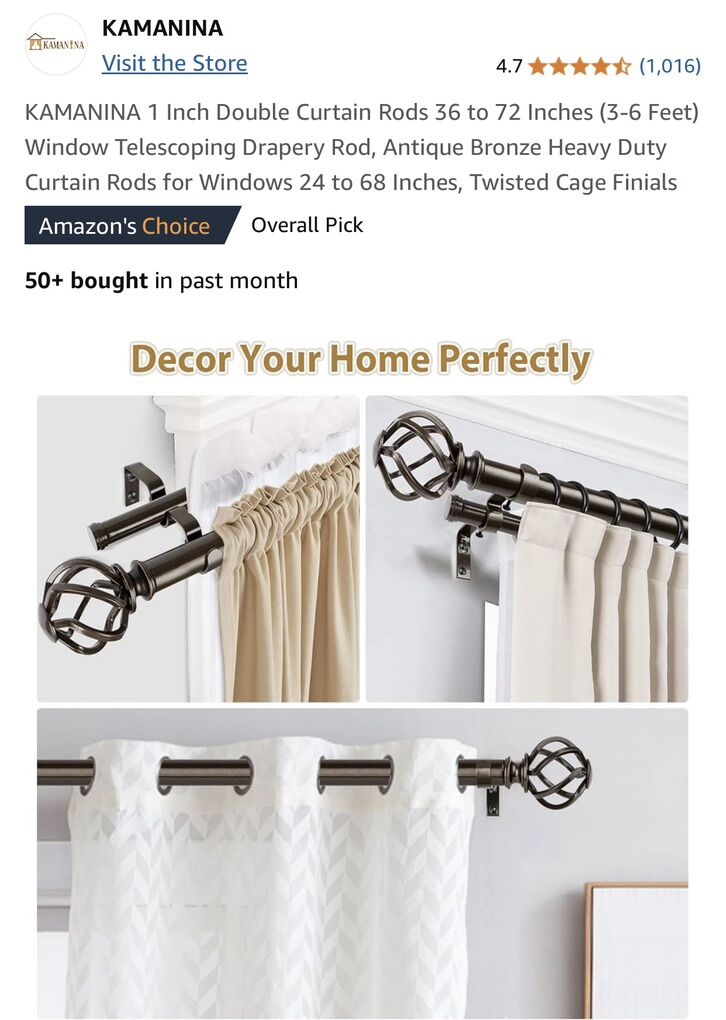Brand New Antique Bronze Heavy Duty Curtain Rods Twisted Cage Finials