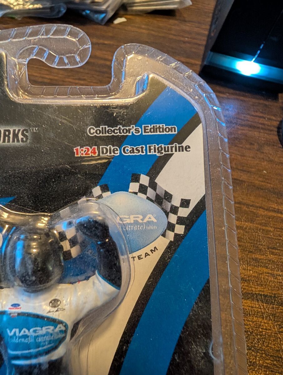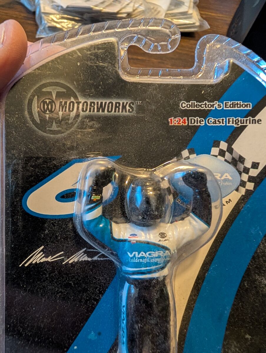 PayPalExperience the thrill of NASCAR with the Motorworks Mark Martin #6 Pfizer Viagra die-cast figure. This collectible is a detailed 1:24 scale replica of the iconic racing car driven by the legendary Mark Martin in 2003, finished in the distinctive Pfizer Viagra livery that motorsports fans will remember. Crafted from high-quality diecast material, the figure showcases impressive attention to detail, capturing the essence of the vehicle's design and the spirit of the race track. It's a must-have for any NASCAR enthusiast or die-cast collector, bringing a piece of racing history into your home or office. 5 dollars or best offer. Will ship world wide. Seen on the hit show Storage Wars!!