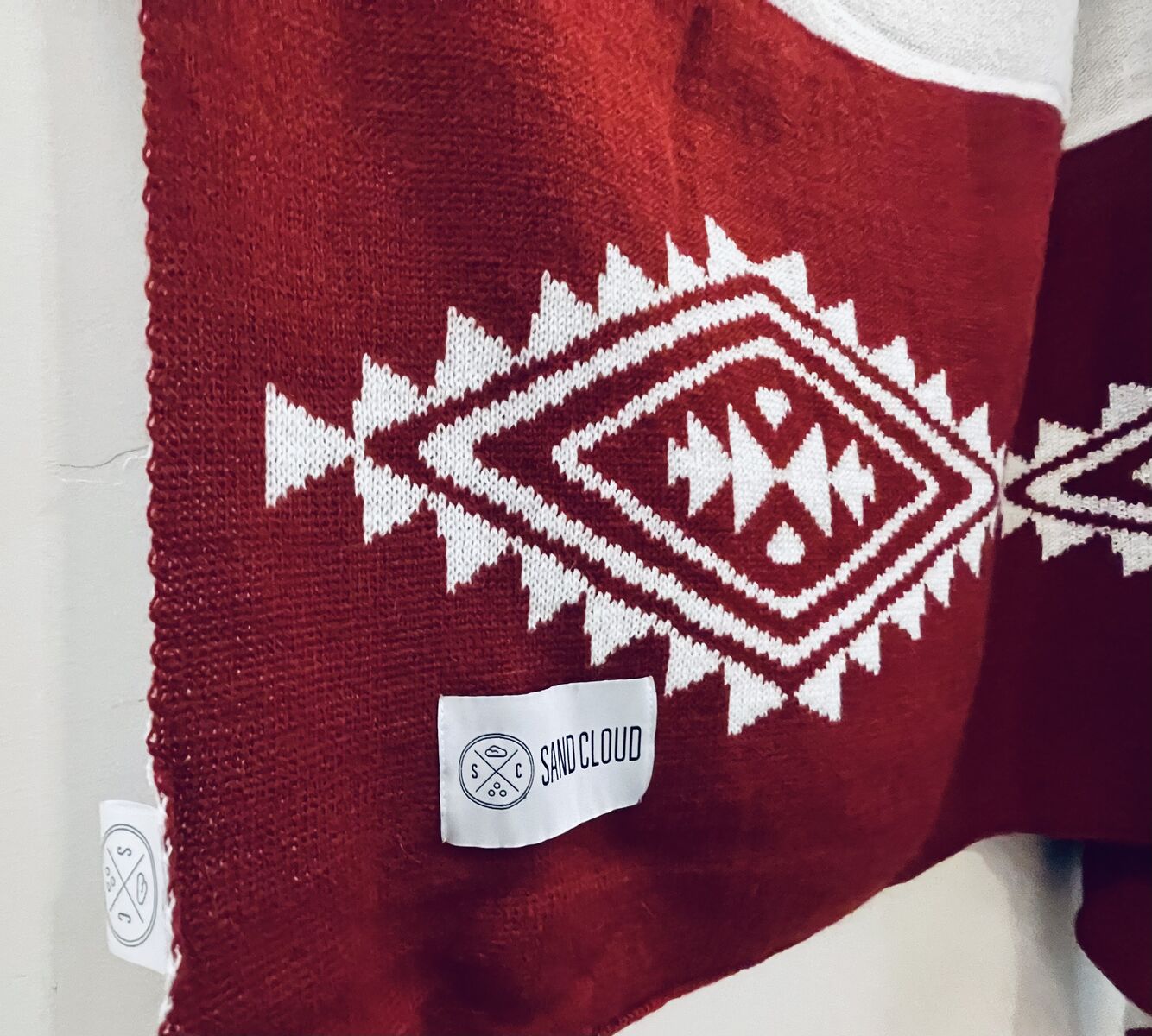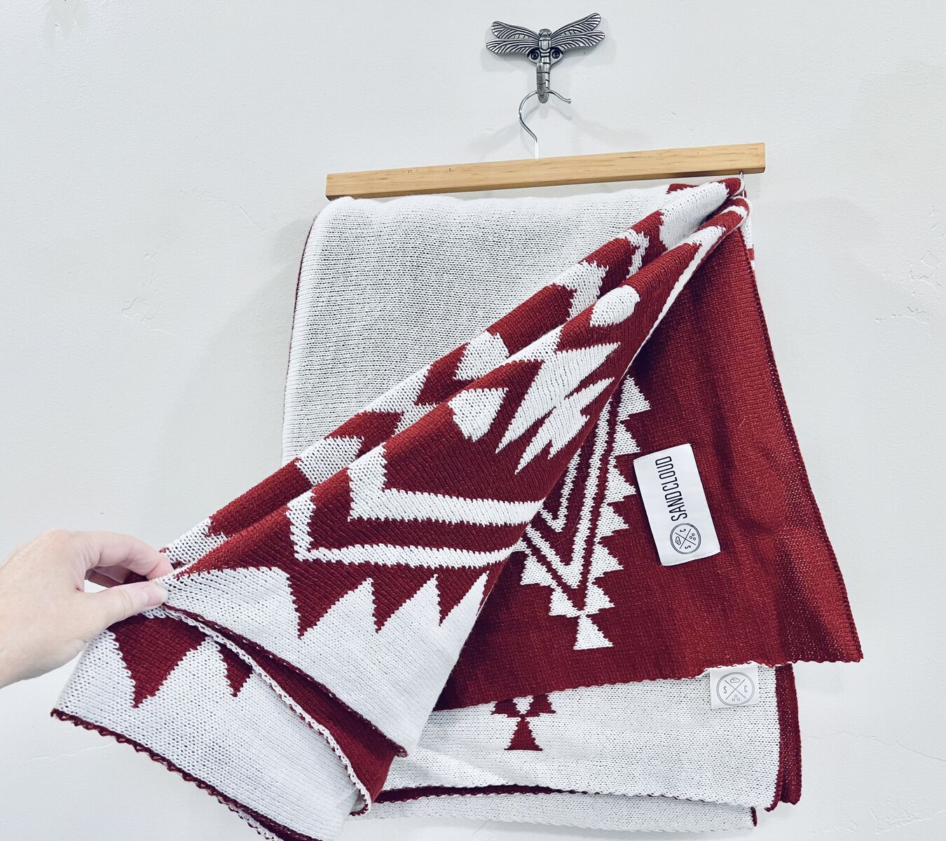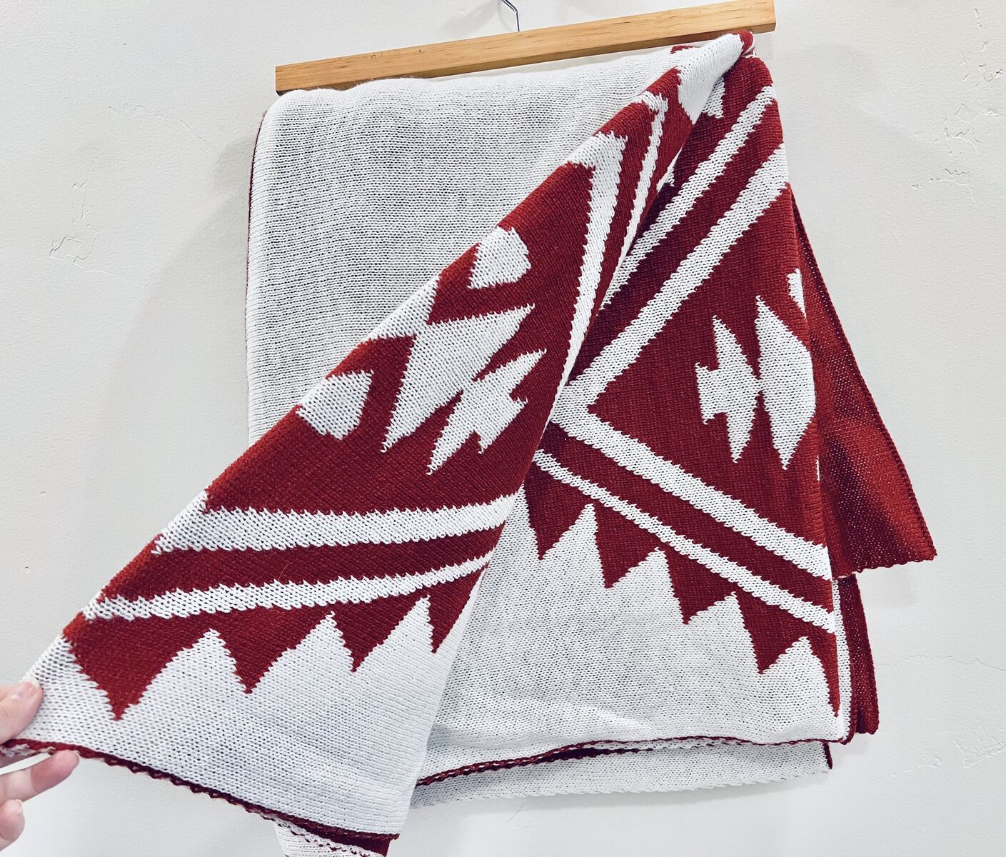 Stunning Sand Cloud Oversized Aztec Southwest Throw Blanket. Rich Burgundy/ White. Generous 60" x 70" sizing. 100% Acrylic