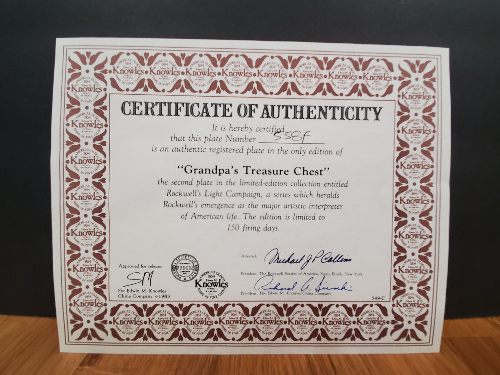 VenmoLimited edition “Grandpa’s Treasure Chest” by Norman Rockwell. New in box with Certificate of Authenticity. Plate measures 8.5" and is in excellent condition. It has been stored in the original box.