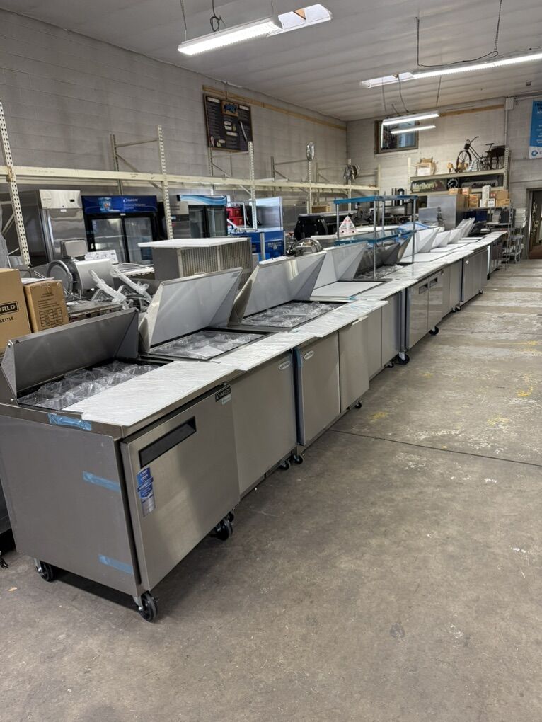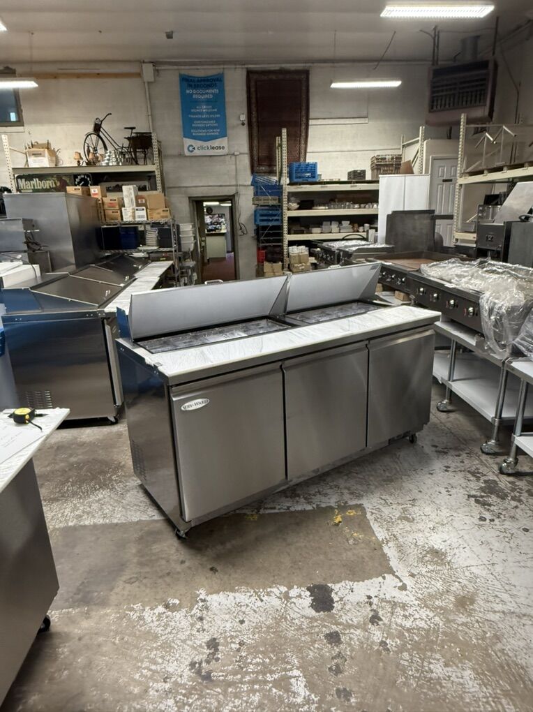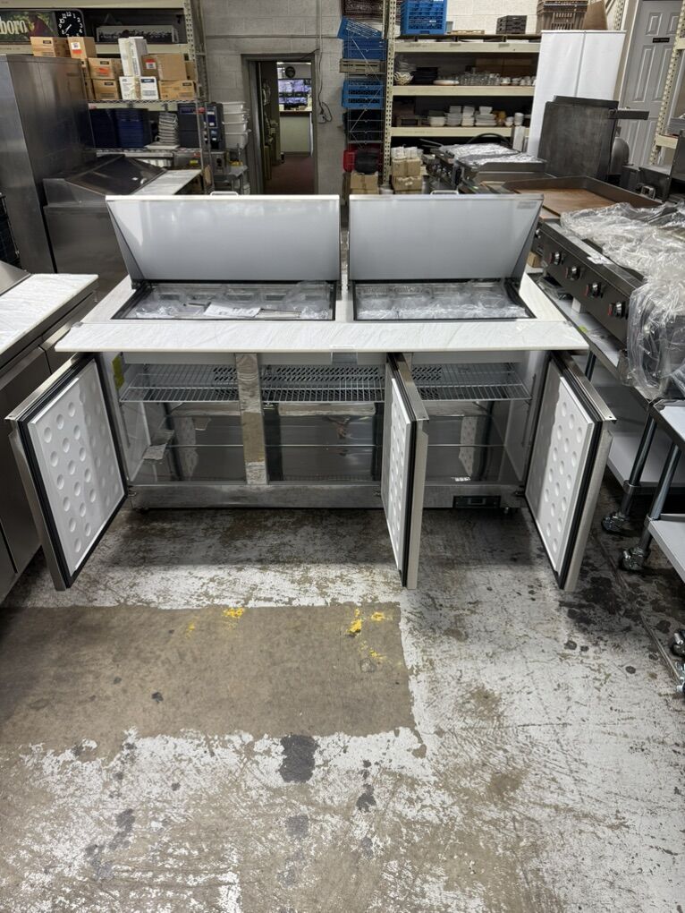 New regular and mega top sandwich tables in stock . We carry 29” one door , 48” two Door ,60” two door , 72” three door regulars and Mega top sandwich wich tables in stock , the best price and quality with 3 years part and labor and 5 years compressor manufacture warranty ,all in stainless steel with wheels for easy moving Regular 29” one door sandwich table with 8 pan Mega top 29”one door sandwich tables with 12 pan Regular 48” sandwich table 2 doors with 12pan Mega top 48” sandwich table 2 doors with 18 pan Regular 60” sandwich table 2 doors with 18 pan Mega top 60” sandwich table 2 doors with 24 pan Regular 72” sandwich table 3 doors with 18 pan Mega top sandwich table 3 doors with 27 pan Available in stock ready to go all with special on sale while supply last . 3 Years part and labores and 5 years compressor Manufacture warranty .Mohebco Restaurant supply store and Bakery equipment Open 10 Am-5 Pm M-F closed Saturday and Sunday 929 South 500 west SLC Ut .