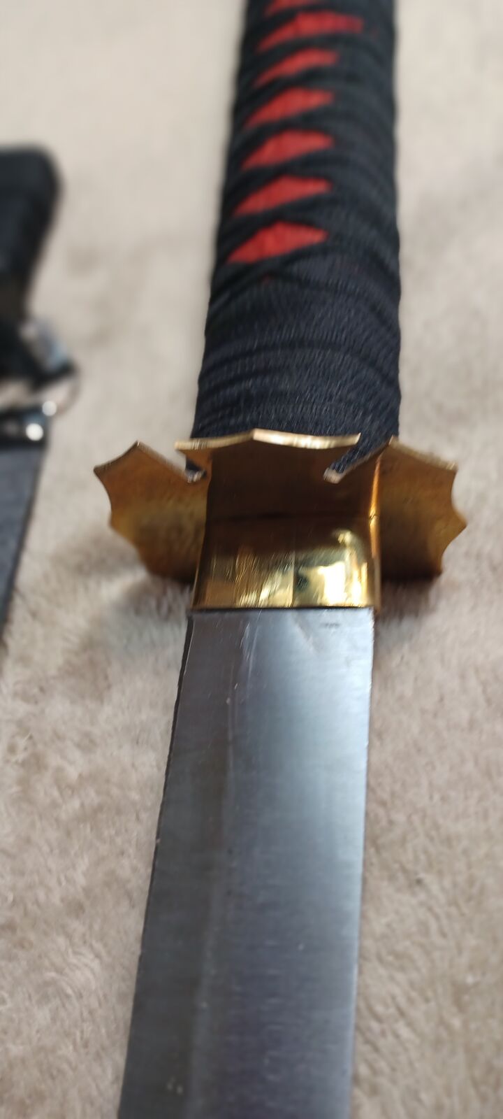 Decorative Samurai Sword, Cord Wrapped, Red & Black, Length 35 3/4", with Scabbard 37", single side blade, Cash only, Pre-owned, Unused, Local sales only or Buyer pays shipping