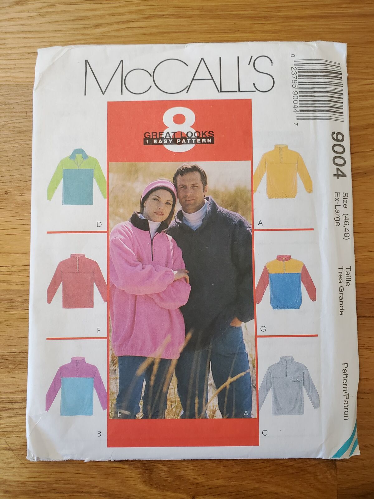 McCalls 9004 Loose fitting top with buttons, snaps, or zipper closure, collar variations has optional elastic on sleeves and lower edge; headband also included.