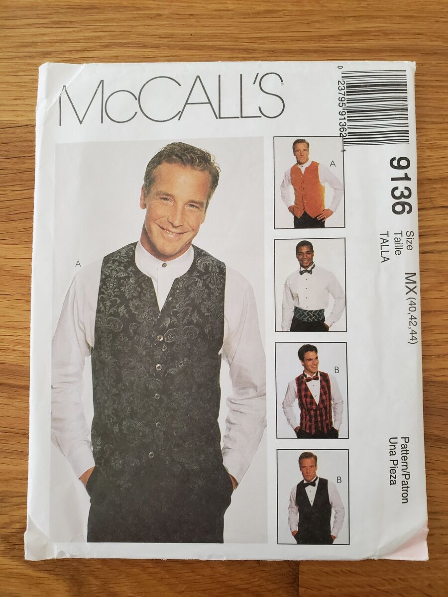 McCall’s 9136 Men’s Lined Vests, Bow Tie and Cummerbund, size 40, 42, 44