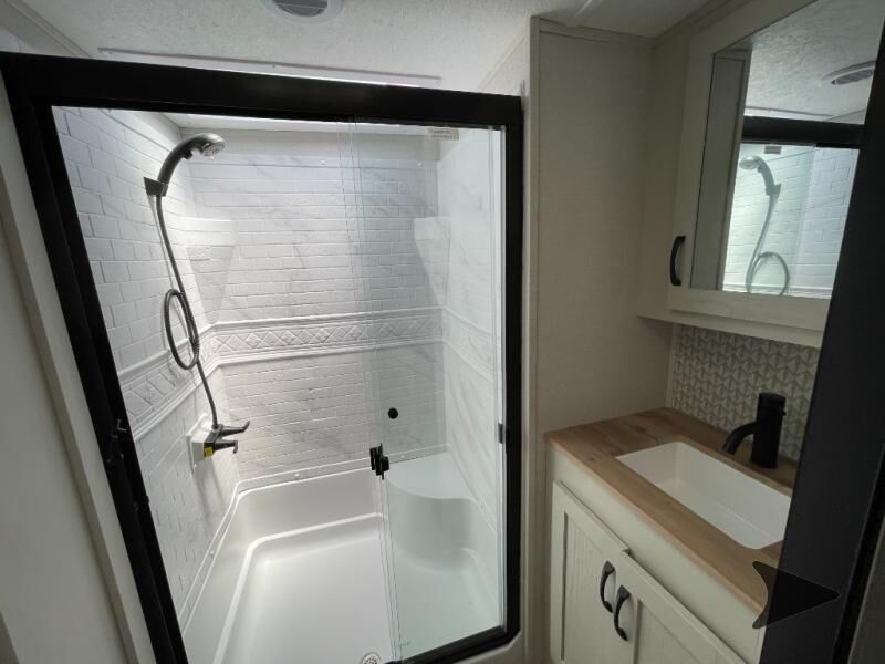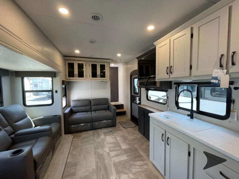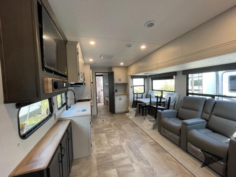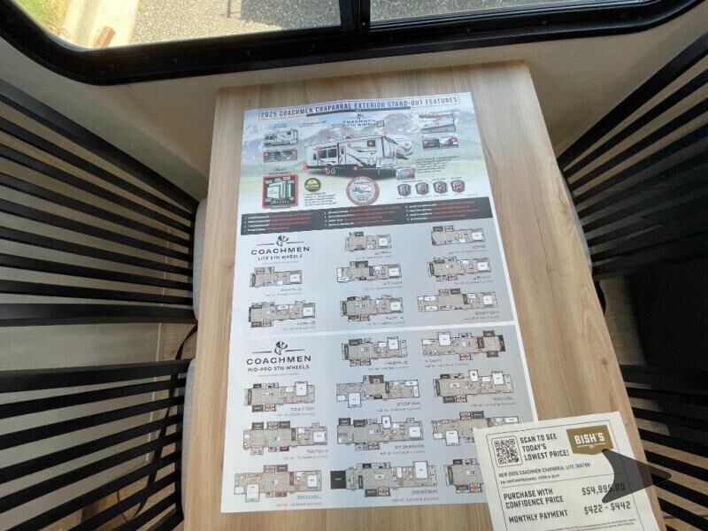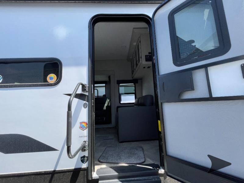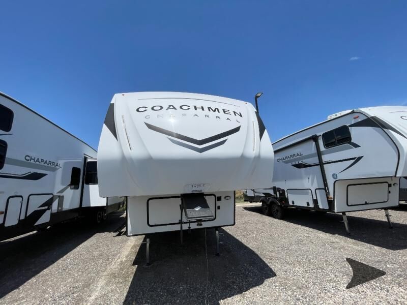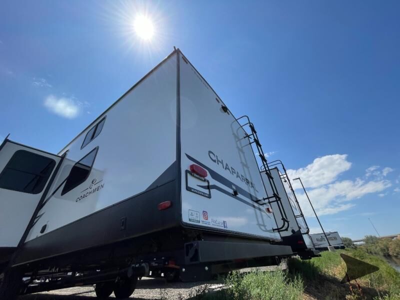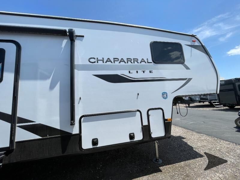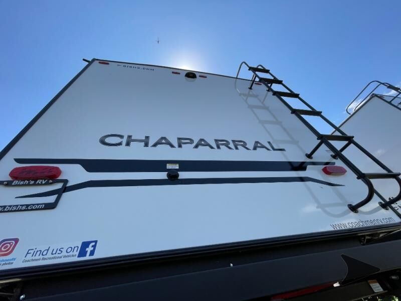 Coachmen RV Chaparral Lite fifth wheel 368TBH highlights: Private Bunkhouse Front Private Bedroom Two Full Bathrooms Single Slide Outside Kitchen This fifth wheel is big enough for the whole gang! The kiddos will love having their own private bunkhouse which has30" x 74" bunksand its very own full bathroom complete with a wardrobe. Enjoy your own privacy with the front private bedroom with aqueen bed, dual nightstands, plus roller night shades for privacy. You can even transform the tri-fold hide-a-bed sofainto an extra sleeping space and the free-spanning table offers a comfortable place to play card games. The chef can either prepare their delicious meals indoors with the GE Profile 21" stainless steel oven with a residential cooktop or breathe in some fresh air while cooking at the outside kitchen while staying protected by the 18' electric awning! Comfort, convenience, and an easy haul is what you will find with each one of these Coachmen RV Chaparral Lite fifth wheels! Their Tri-Tex powder coated frame technology is up to 5X more weather resistant, and the dual-sided Azdel composite sidewall panelsare ultra durable. The Road Armor suspension by Trail Air comes with heavy duty shackles and wet bolts so you can be sure it will hold up through every adventure, and you might want to add the exterior back-up and sideview camera prep for easy parking.You will feel right at home inside with slow rise blackout roller night shades, an upgraded Carbon and Walnut entertainment center, a modern high-rise kitchen faucet, and many more comforts! The exterior is just as inviting with its electric awning with LED lights, Solid Step entry steps, and pass-through storage for all your gear!
