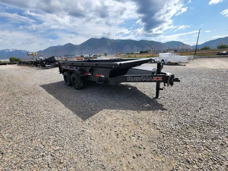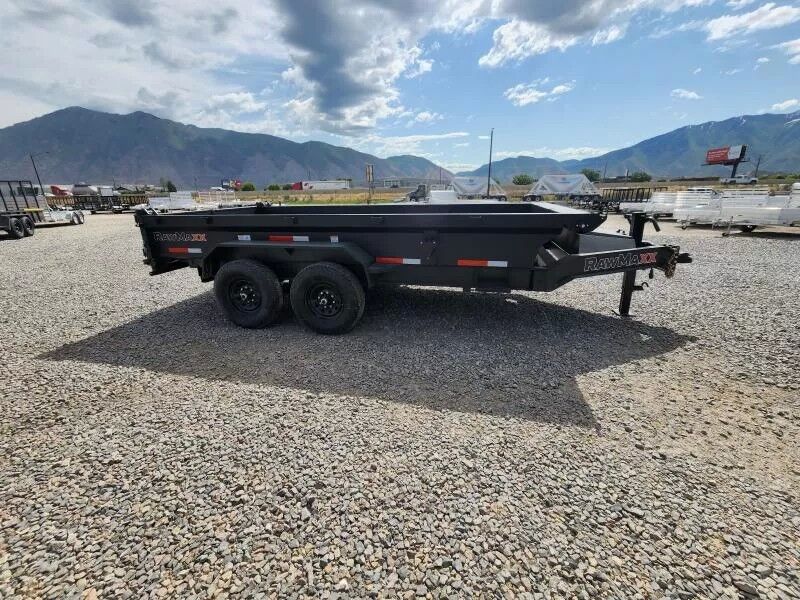 Stock #: RM1458 Trailer Specs: Color: Black Powdercoat Overall: Length: 19'0" Width: 8'6" Interior/Bed: Length: 14' Width: 7' Side Height: 19" Weight: 4,400 lbs. | GVWR: 14,000 lbs. | Payload: 9,600 lbs. Axle(s): 7,000 lb. Dexter Spring Braked Axle w/ EZ Lube Hubs Tire/Wheel: ST235/80R16 | Load Range E Coupler: Type: Bumper Pull | Size 2 5/16" | 7-Way 12V Connector 8"x13lb I-Beam Main Frame | 3" Channel Cross-Members | 16" OC 5 Year Dexter Axle Warranty 3 Year Structural Warranty 1 Year Limited Warranty Standard Features: 7 Cubic Yard Capacity 12G Steel Side Walls w/ Reinforced Rails 8G Steel Floor Plate (4) Welded D-Rings Power Up/Down KTI Hydraulic Pump 5" Hydraulic Cylinder w/ Scissor Lift Rear Barn & Spreader Gate 10K Drop Leg Jack Safety Chains All-Weather Wiring Harness Breakaway System w/ Charger LED DOT Approved Lights Powdercoated WASATCH TRAILER SALES - LARGEST TRAILER SELECTION IN UTAH Springville: (801) 528-1581 | 1180 S 2000 W, Springville UT, 84663 View More Inventory: www.wasatchtrailer.com