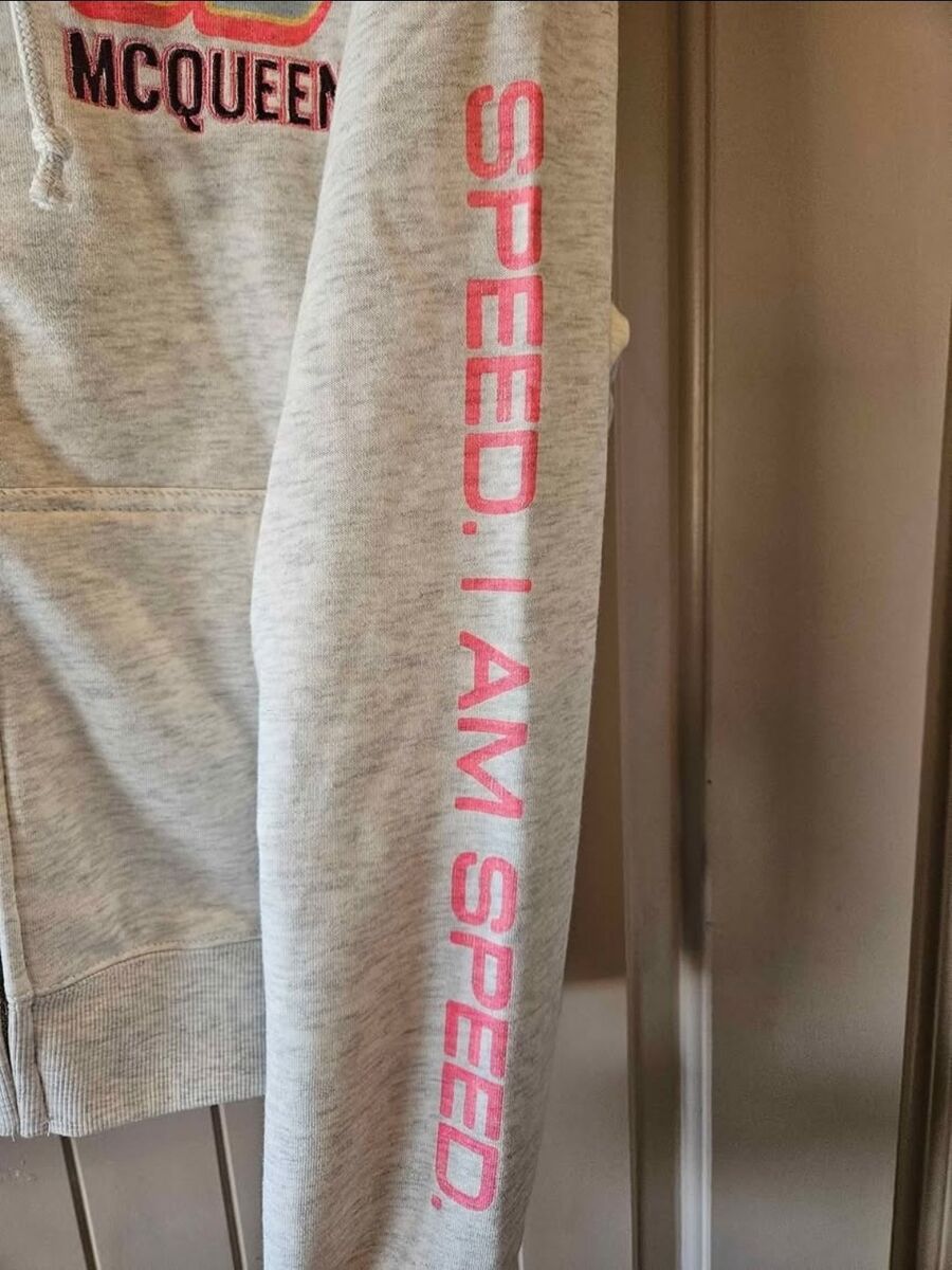 New Lightning McQueen's zip up hooded jacket, partially embroidered on front.