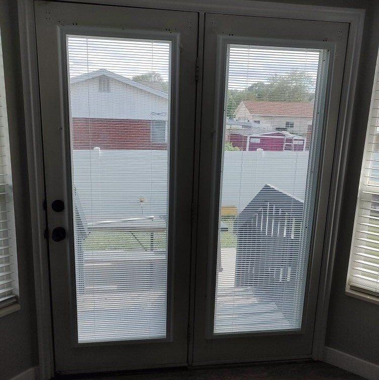 We bought these for our patio door a few years ago but we just replaced the door so we won't need them anymore. When we bought these it didn't include the hardware so we ended up drilling directly into the frame as shown in pictures but you can probably buy the hardware separately. Blinds are in good condition, not broken or bent. Asking $20