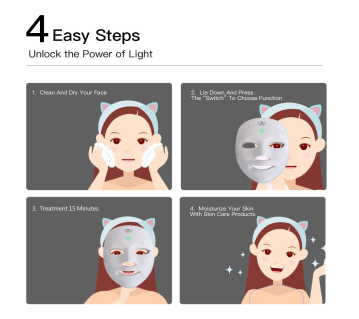 Zelle15min AUTO OFF & MULTI FUNCTION & LIGHT WEIGHT: This light therapy designed for skin beauty, anti skin aging, restore and beautify your complexion, 99% purity LED chips provide stable and suitable light wave. 15 mins auto OFF make your more confident. Light weight designed makes it comfortable to cover on your face.