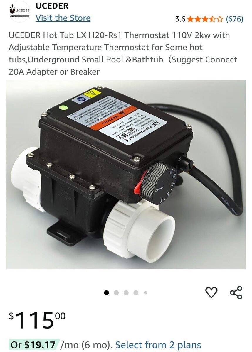 PayPalNew with box, UCEDER Hot Tub LX H20-Rs1 Thermostat ($115 on Amazon). See pics! Does not include white couplers shown on Amazon.