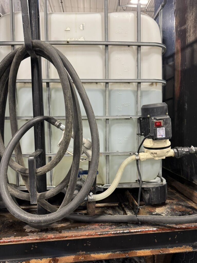 Multiple fluid tanks including: Diesel ATF Hydraulic Fluid Engine Oil Gear Oil Waste Oil.