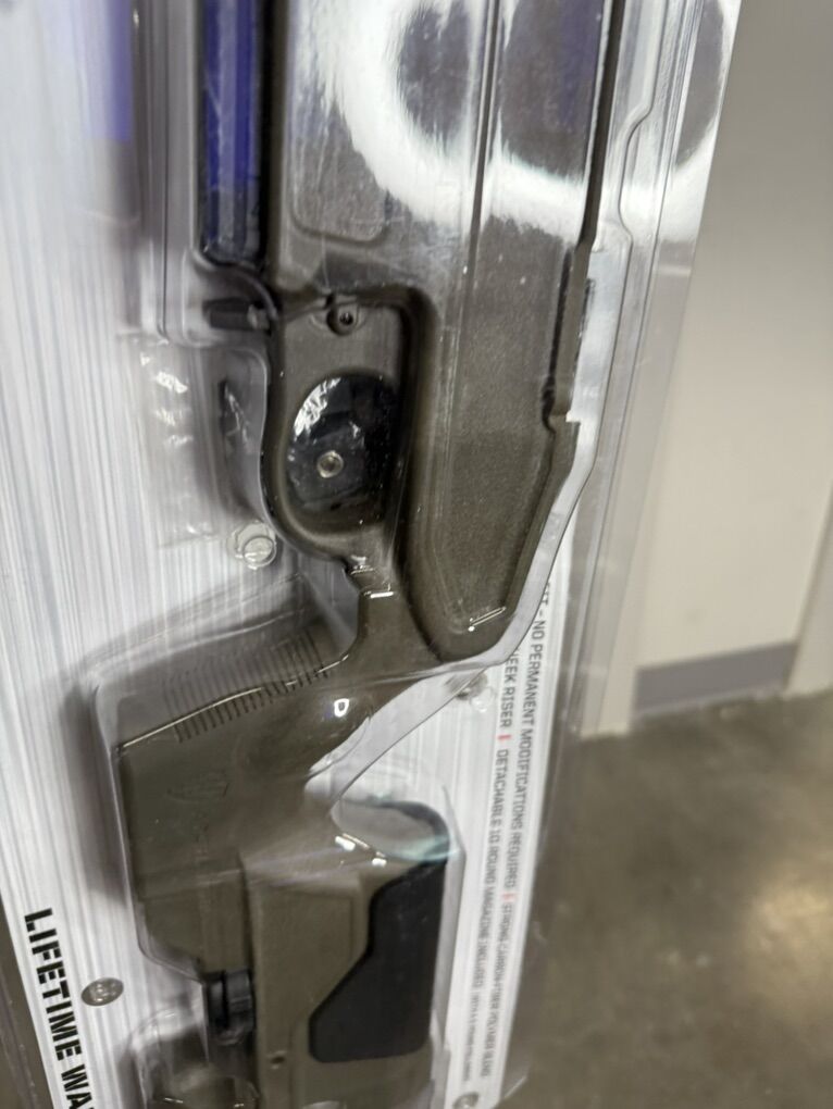 The packaging is damaged, as seen in the photos.