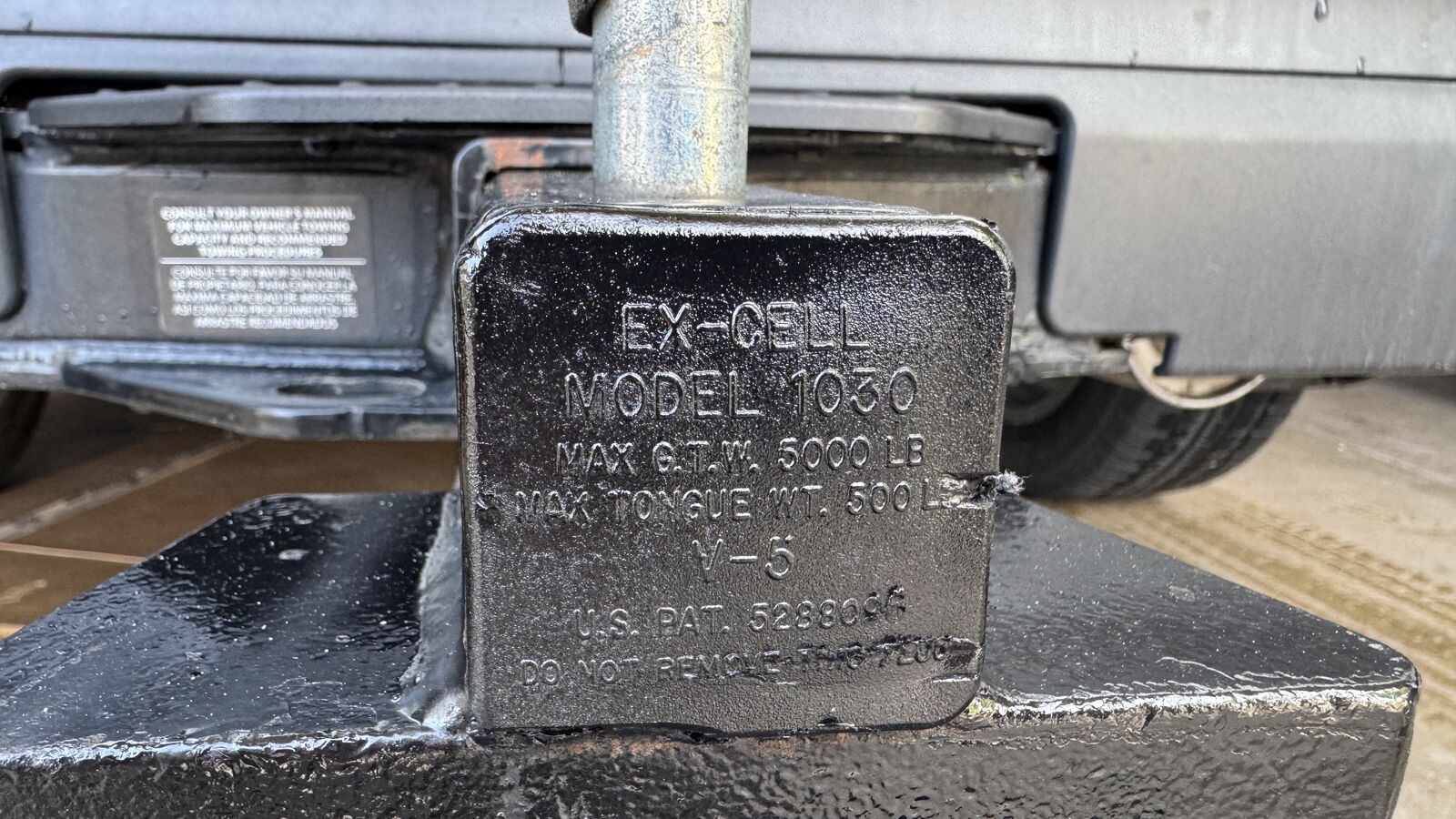 ApplePay5" drop Easy Glide hitch, heavy duty - I used this hitch with my boat and it made hooking up easy. I could slide it out, lower trailer on to the ball, and then back up until pin dropped and it would be connected. 5000lb Class V , EX-CELL model 1030