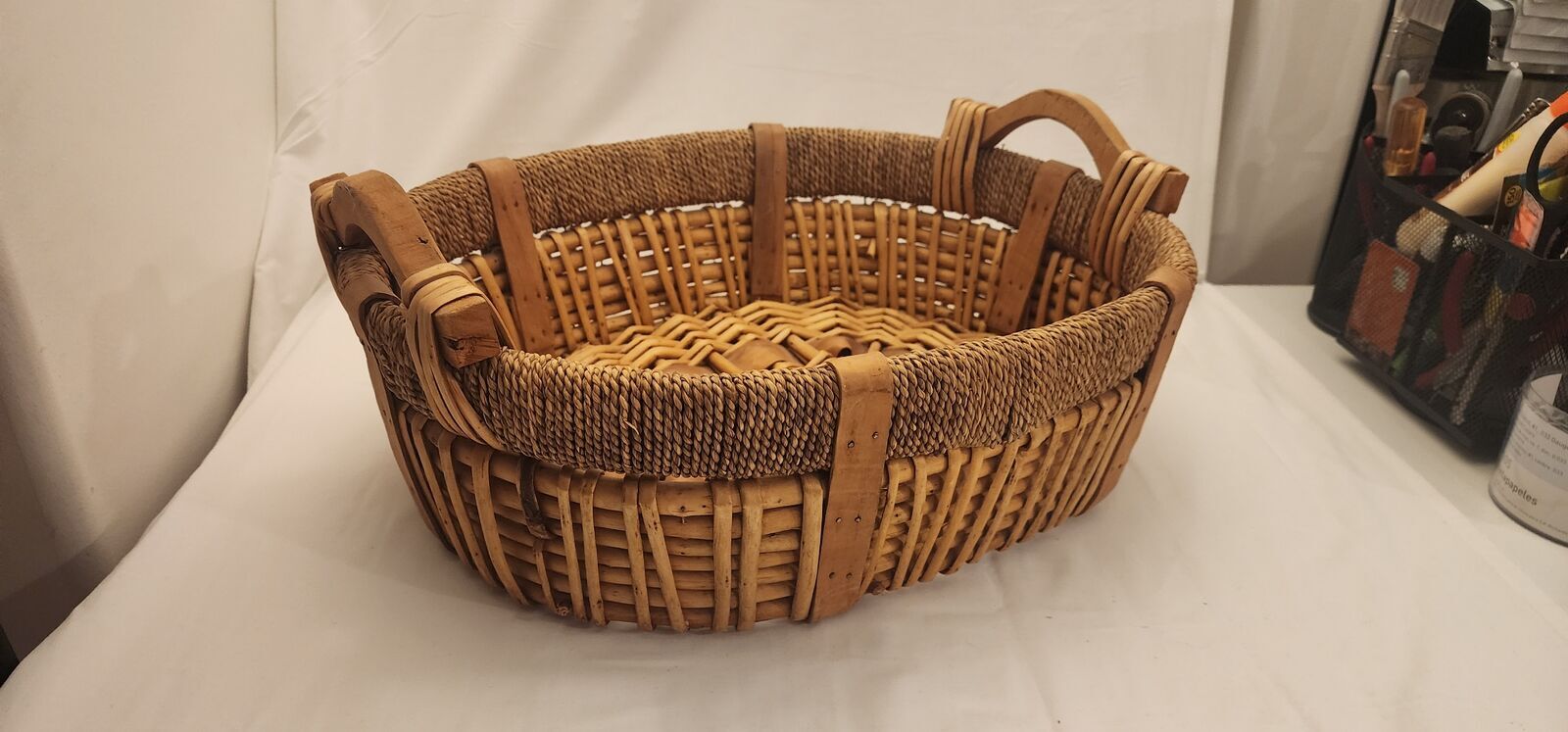 larger Wicker Basket with Wooden Handles - 19X16X6 Inches