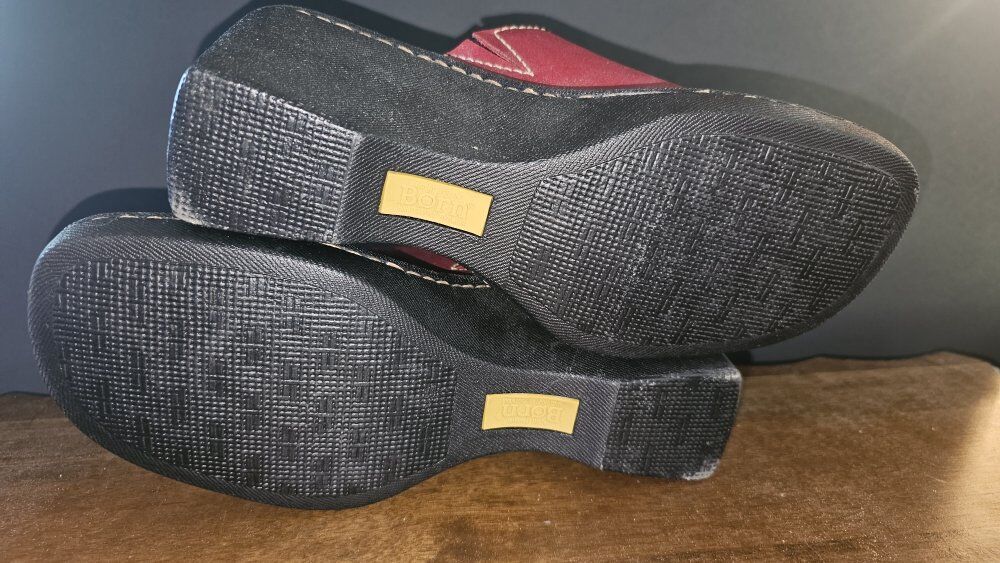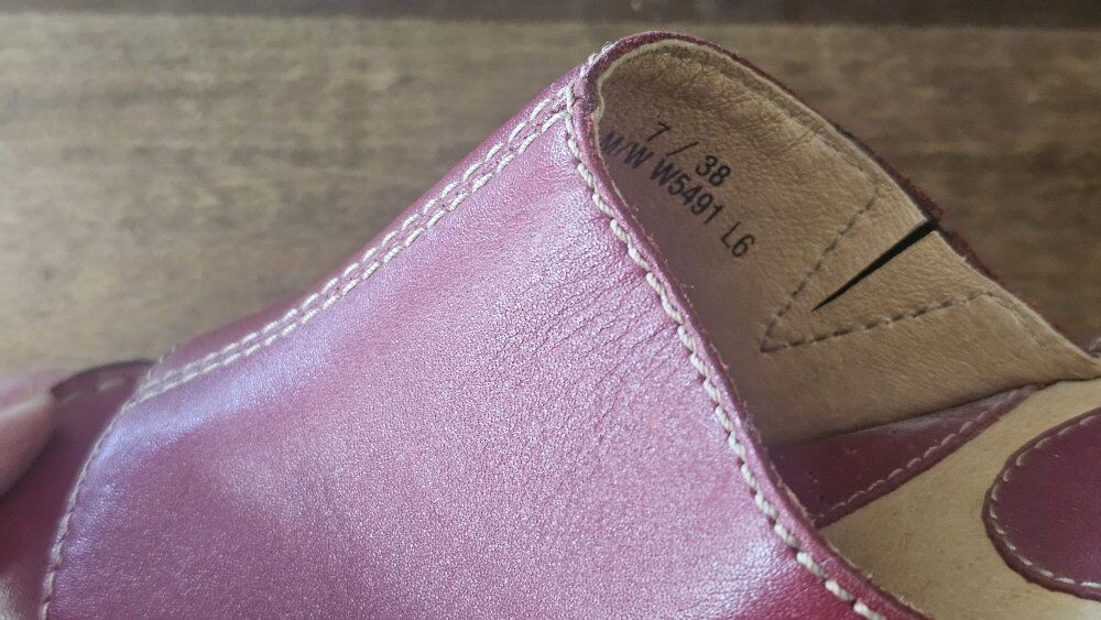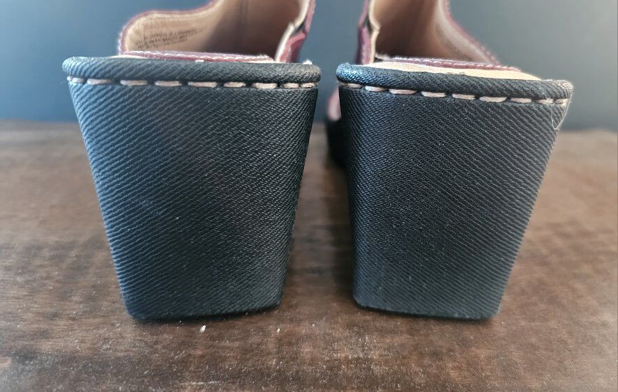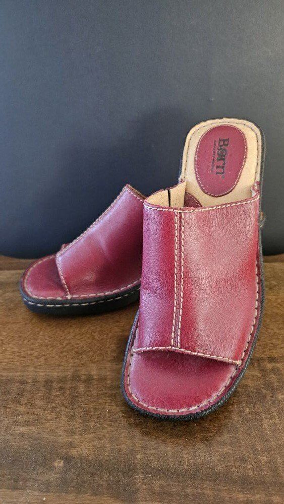 New, never worn, size 7 (38) healed leather platform sandal. Pretty Ox Blood (Cranberry Wine) color. Easy ON/OFF, GREAT for summer.!!
