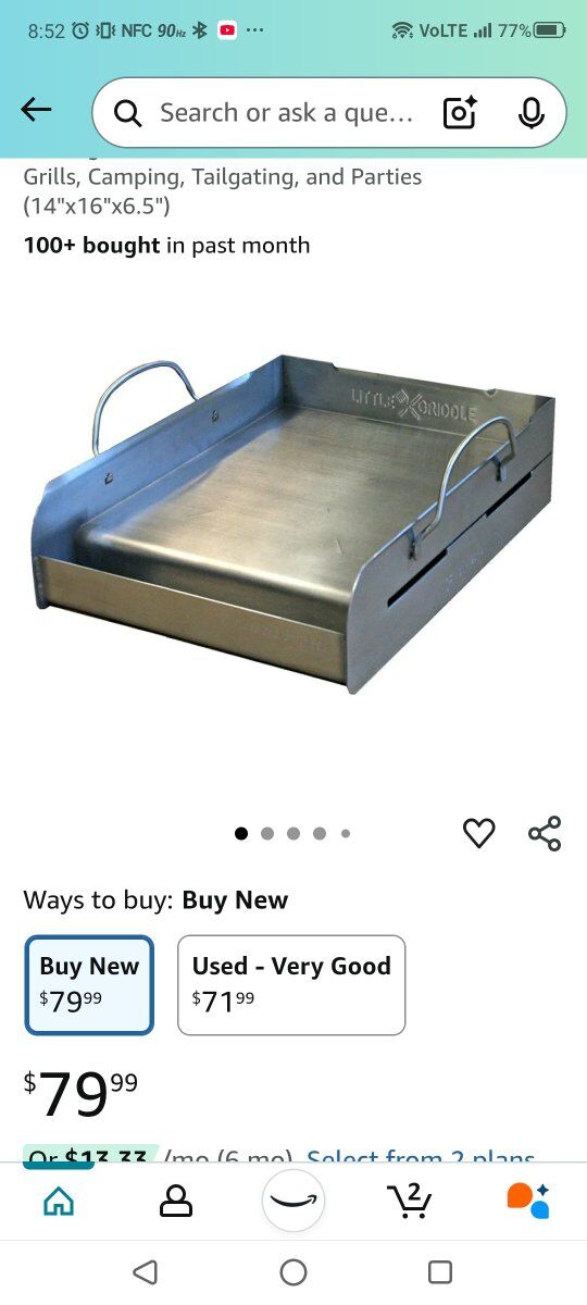 Little griddle-Q GQ120 100% Stainless Steel Medium-Sized Professional Griddle with Even Heating Bracing and Removable Handles for Charcoal/Gas Grills, Camping, Tailgating, and Parties (12"x16"x4")