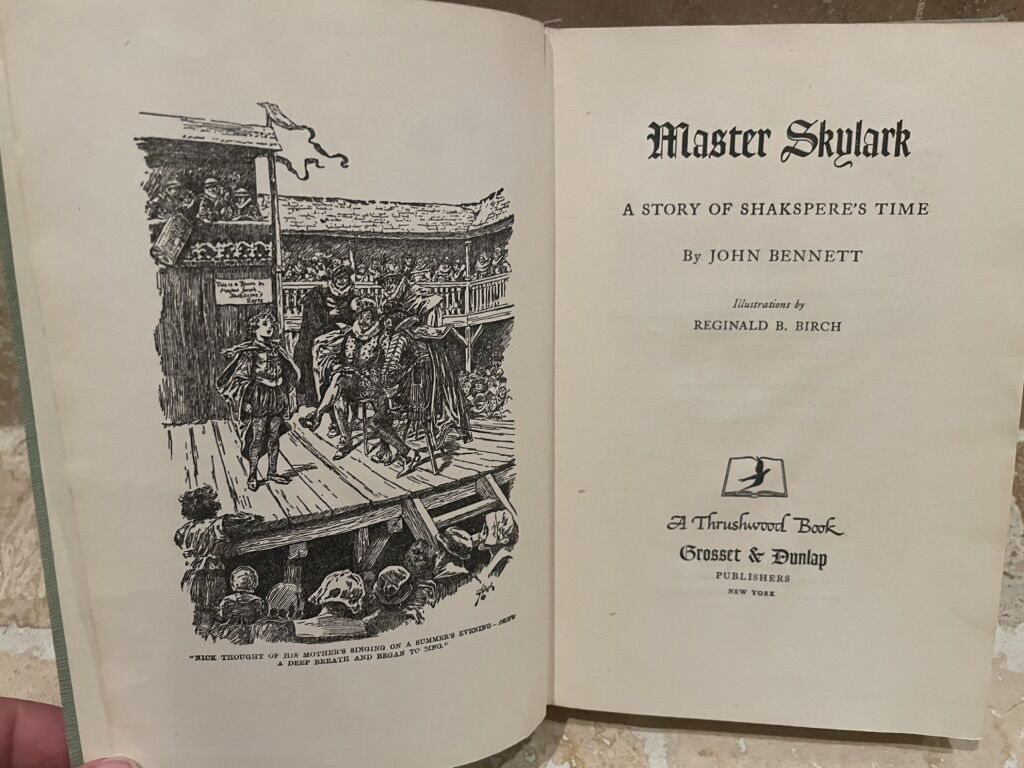 I have an old hardback copy of Master Skylark by John Bennett. The front cover says A Thrushwood Book. The last copyright date printed in it is 1924. There is a name written inside and a date of 1950-1951. The cover has some discoloration and the binding is a little loose but the pages are in good condition. See my other ads for jewelry, artwork, home decor and more.
