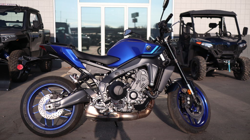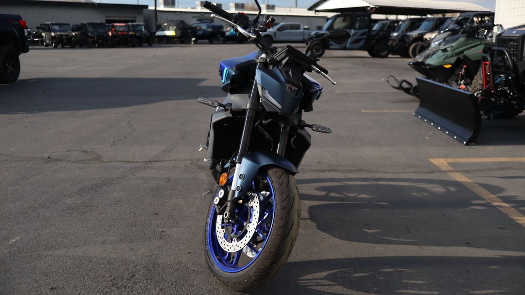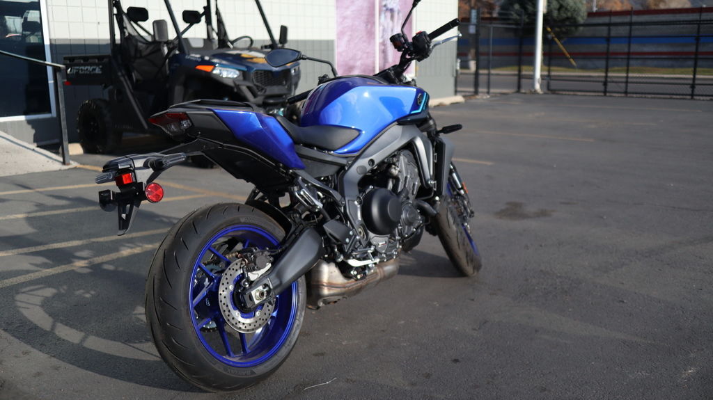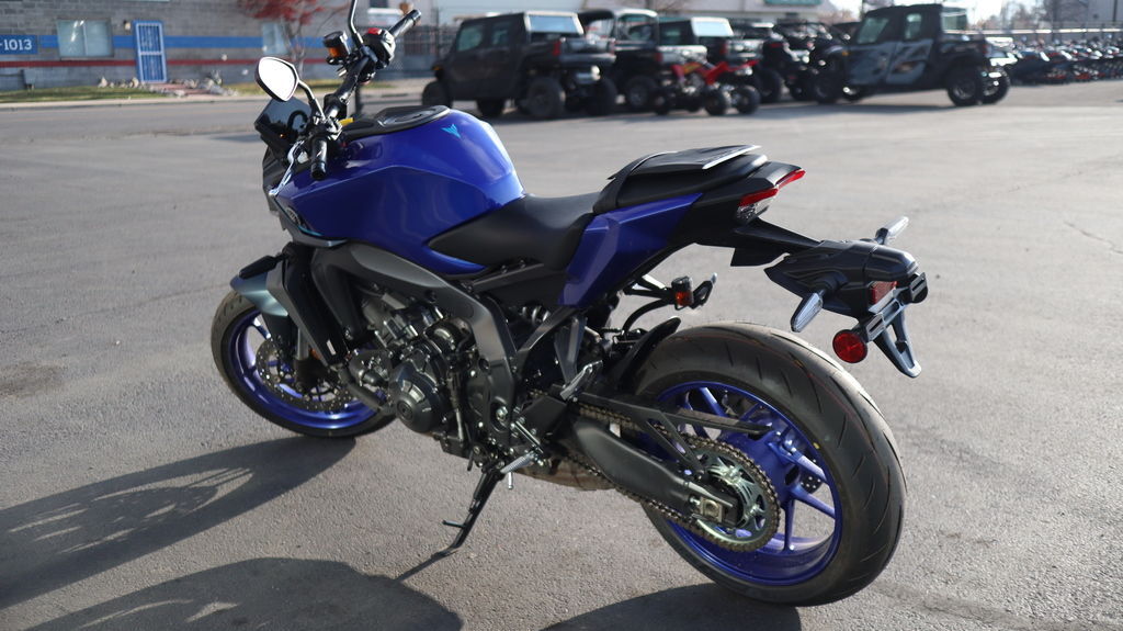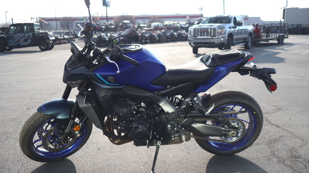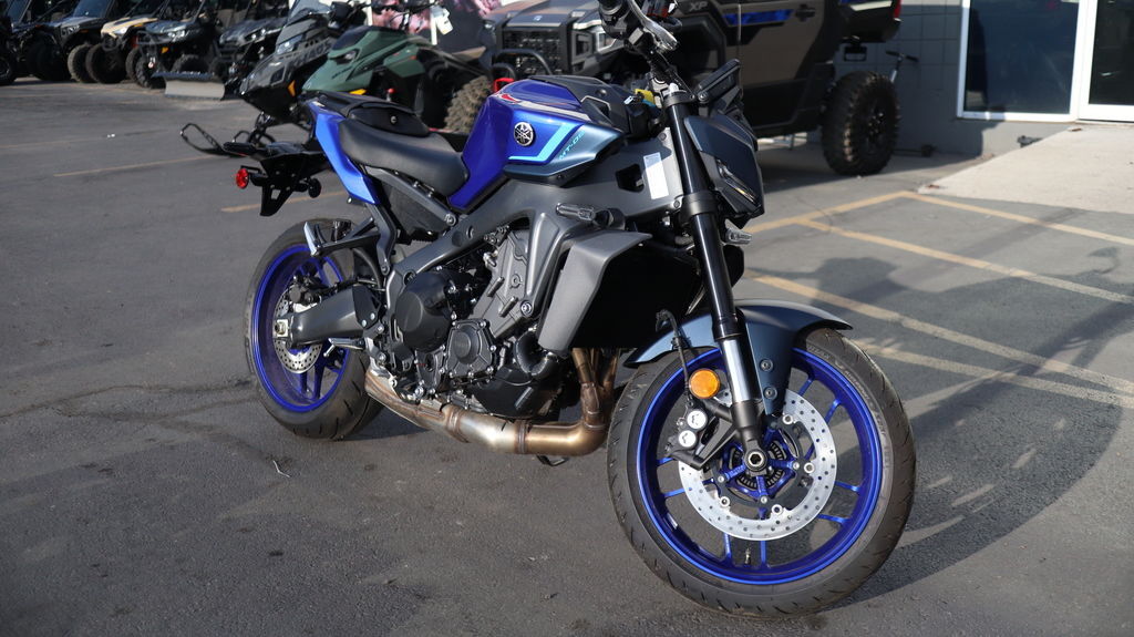 2025 Yamaha MT-09 UNLEASH YOUR DARKNESS The industry benchmark in Hyper Naked performance with razor sharp handling, thrilling 890cc triple-cylinder power, class-leading technology and distinctive Dark Side styling. Features may include: Aggressive Next-Generation Styling Aggressive next-generation styling takes the Hyper Naked look to a new level with sharper, more defined lines and minimal bodywork. A bi-functional LED headlamp is shrouded in a cover, creating a compact and unified relationship with the fuel tank and tail section, while a more forward-leaning stance maintains the edgy street aesthetic synonymous with the MT name. Powerful 890cc Three-Cylinder Engine Yamaha's renowned 890cc liquid-cooled CP3 engine is light, powerful and provides a thrilling wave of torque from low rpms. A combination of carefully tuned induction sound and distinctive crossplane triple exhaust note provides a resonance which only heightens the feeling of acceleration. Throttle valves are governed by the Yamaha Chip Controlled Throttle (YCC-T) system enabling finer actuation and precise control. Lightweight CF Die-Cast Aluminum Frame The MT-09 features an advanced, lightweight aluminum frame refined to showcase the MT's signature agility. To ensure both straight-line stability and handling performance, the balance of longitudinal, lateral and torsional rigidity are all carefully considered and finely tuned. The frame is manufactured using Yamaha's groundbreaking controlled fill (CF) die casting technology which contributes to its light weight. Advanced Six-Axis IMU The MT-09 features an advanced six-axis Inertial Measurement Unit (IMU) that matches the base performance of proven IMU in the YZF-R1 Superbike. Data collected from the IMU and wheel speed sensors enable a high-tech suite of rider aids including a four-mode Traction Control System (TCS), Slide Control System (SCS), front wheel Lift Control System (LIF) and a two-mode Brake Control System. Each of these systems can be turned off and Traction Control, Slide Control and Lift Control can have their levels of intervention adjusted to preference. With its best-in-class electronic control technology, the MT-09 gives you the ultimate versatility in varying weather and surface conditions. Five-Inch Full-Color TFT Display with Integrated Switchgear A full-color five-inch TFT display provides the rider with the option of four different themes to suit specific riding situations or individual preference. The display is navigated through integrated handlebar switches. Button shape and feel have been extensively refined to provide intuitive operation in a compact, easy-to-use solution.