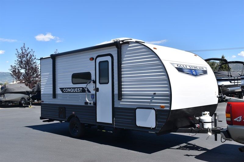2024 Gulf Stream Conquest 177BH Sleeps Up To 6 People. Queen Bed, Bunk Beds, Full Bathroom, Full Kitchen With Fridge and Freezer, 2 Burner Stove, Microwave, Kitchen Table (Turns Into a Bed), Power Awning, Bunch of Storage, 23 Gallon Fresh Water Tank, 36 Gallon Grey Water Tank, 36 Gallon Black Tank, Electric Furnace, Tankless Water Heater, 13,500 BTU Air Conditioner, 3 Year Structural Warranty and So Much More!!!